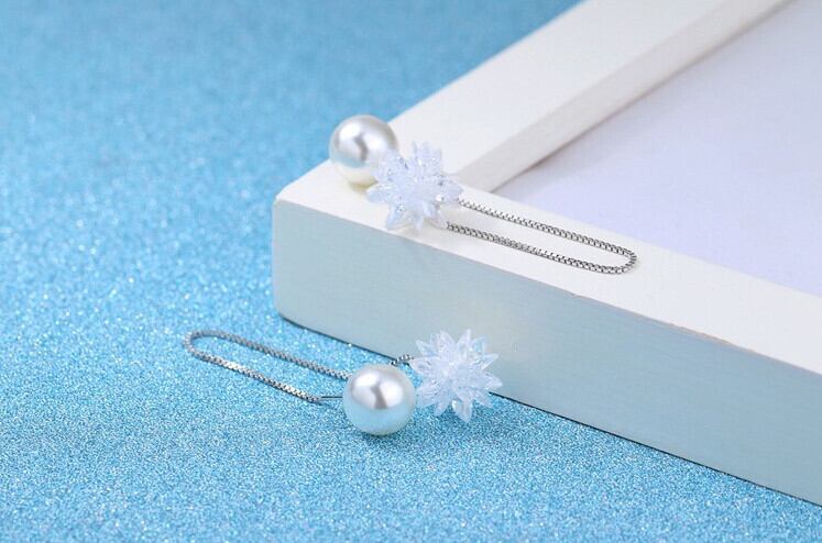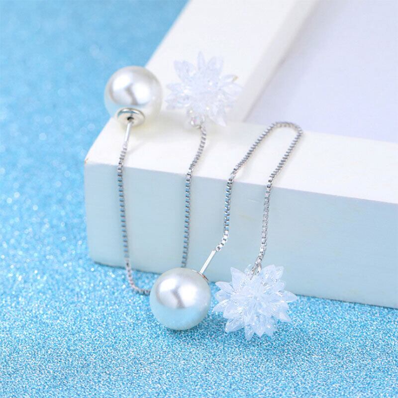 送料無料 ANENJERYシルバーカラースノーフレーククリスタルジルコンボールロングテルイヤリングイヤーラインパールイヤリングクリスタマギフトS-E239 真珠 銀 アクセサリー AE165554290851544