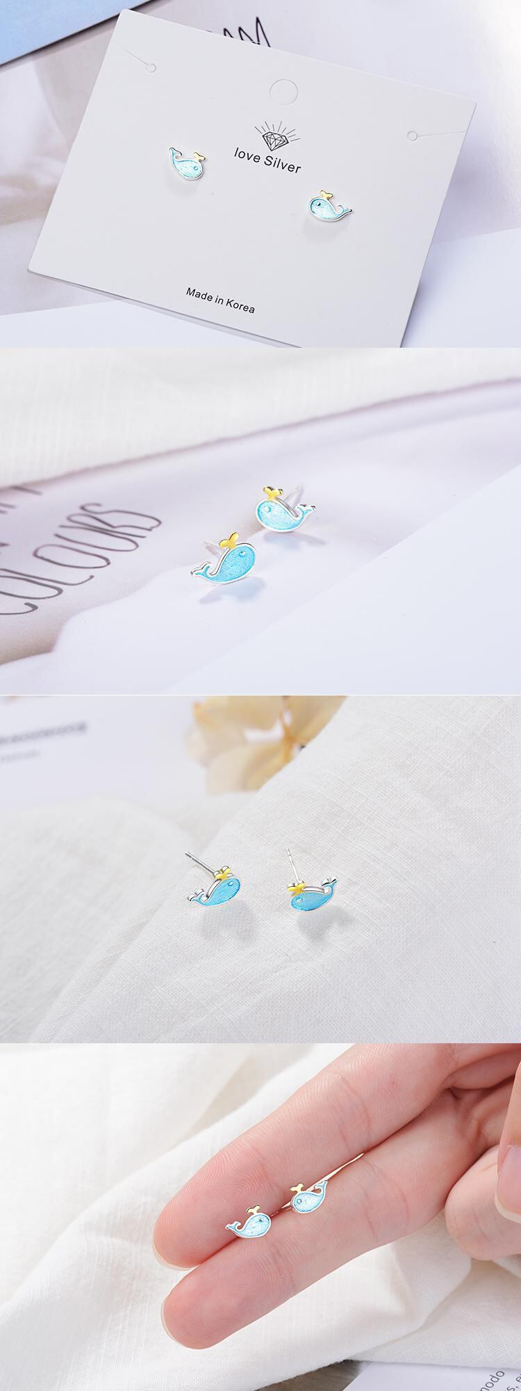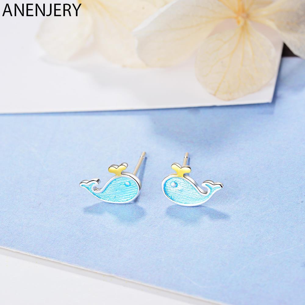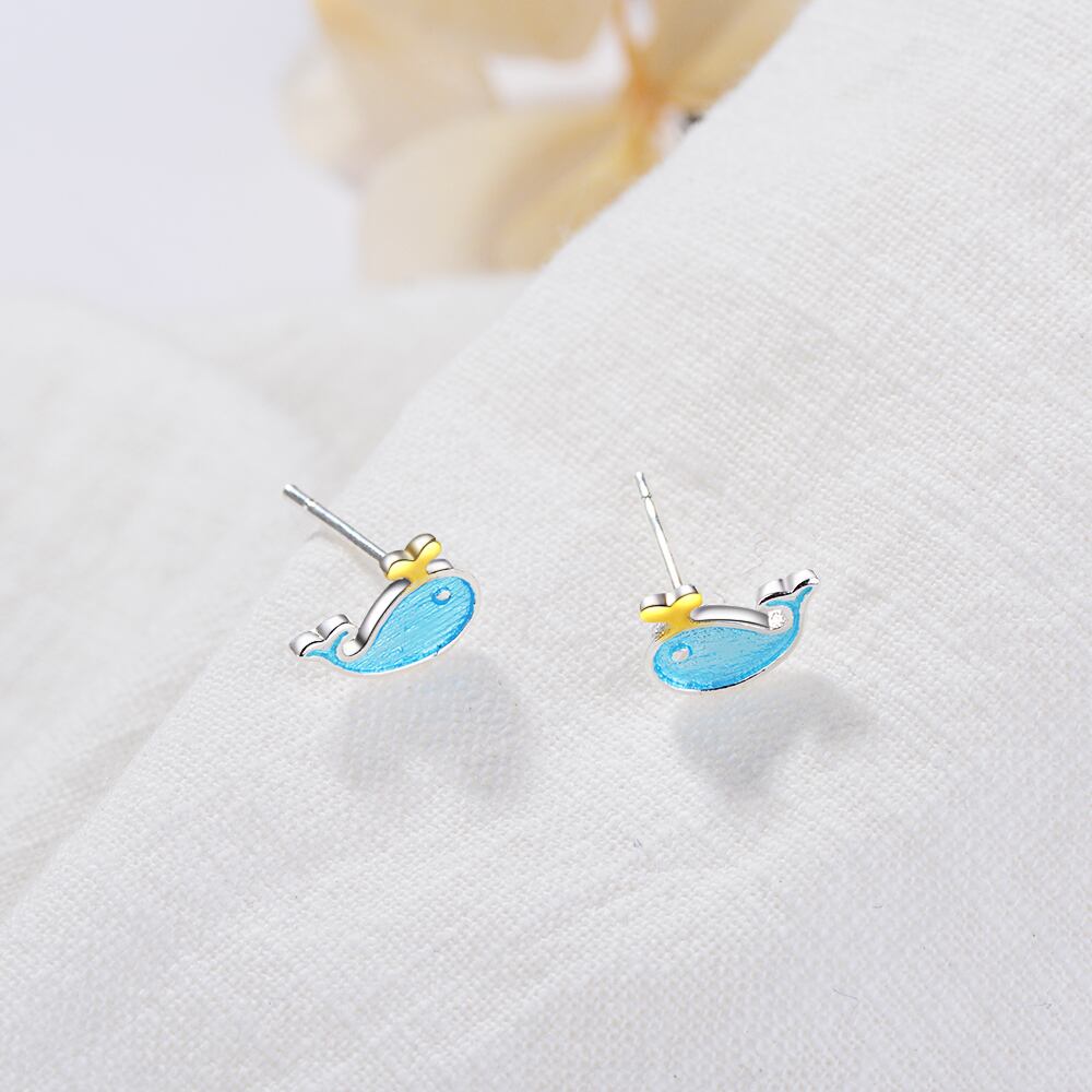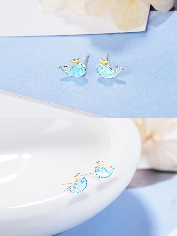 送料無料 ANENJERYシルバーカラー繊細なかわいい小さな青いクジラ海洋動物のイヤリング女性の女の子のギフトブークレドレイユS-E646 ブルー 大人ガーリー スウィート キュート カジュアル 指輪 銀 アクセサリー AE165518335494684