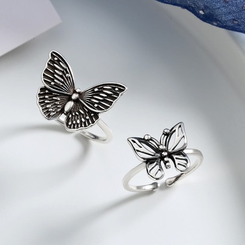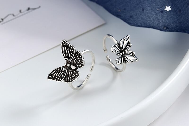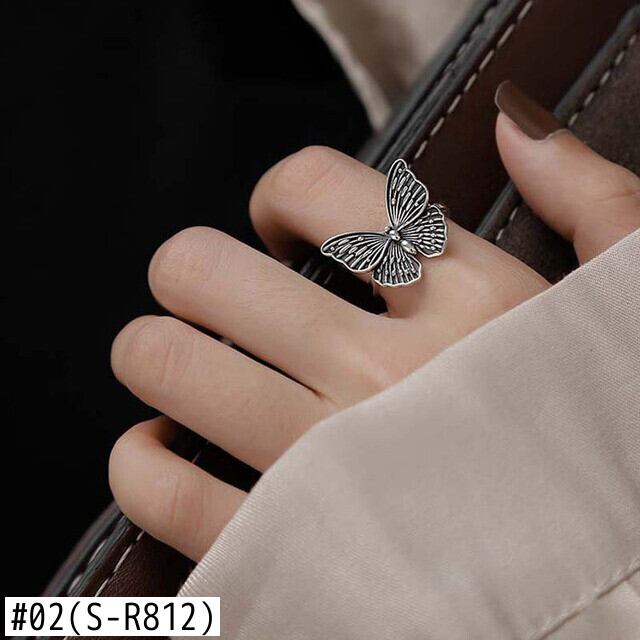 送料無料 ANENJERYシルバーカラーヴィンテージバタフライタイシルバーカラーリング女性調節可能なオープンフィンガーリングパーティージュエリーS-R840 アジャスタブル 指輪 銀 ビンテージ アクセサリー AE165584974551676