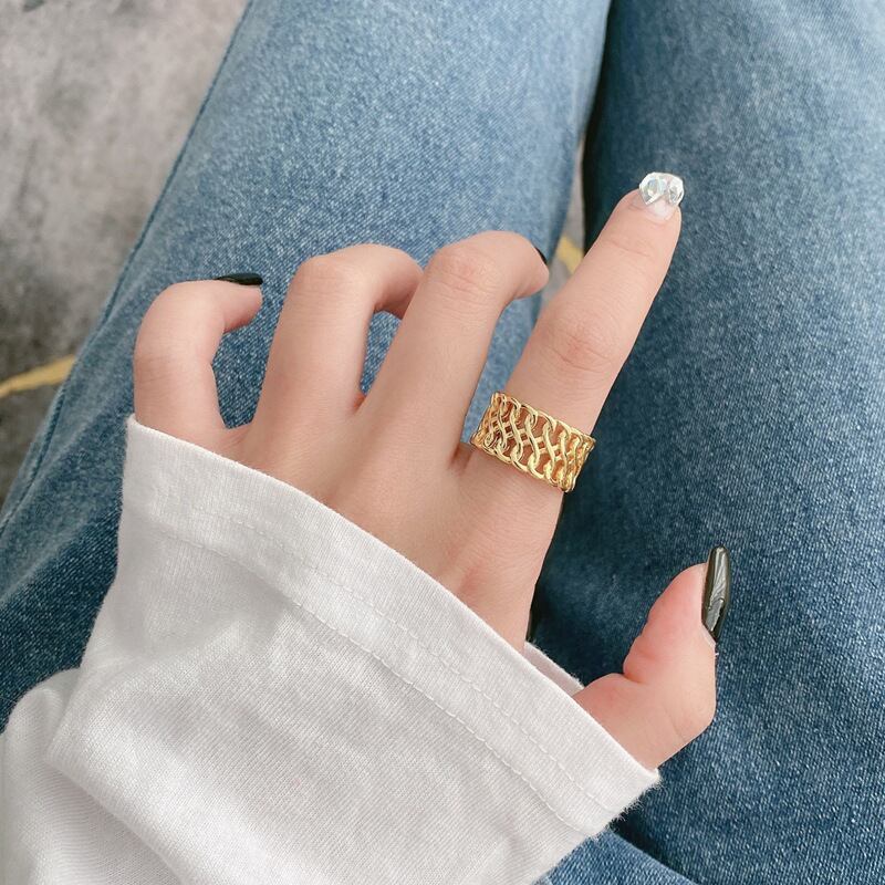 送料無料 ANENJERYシルバーカラーホローロックサークルチェーンオープンフィンガーリングレディースゴールドカラージュエリー2022アクセサリーS-R835 指輪 銀 アクセサリー AE165533310834072
