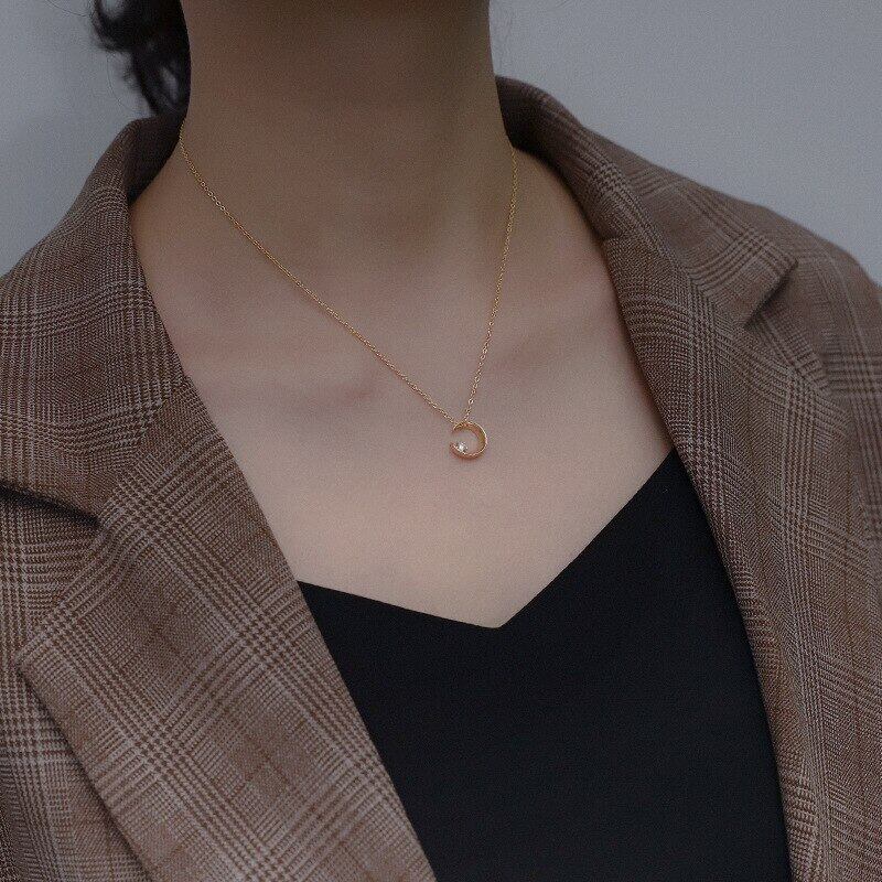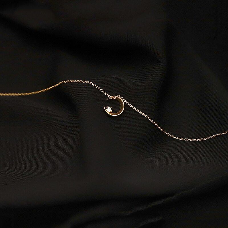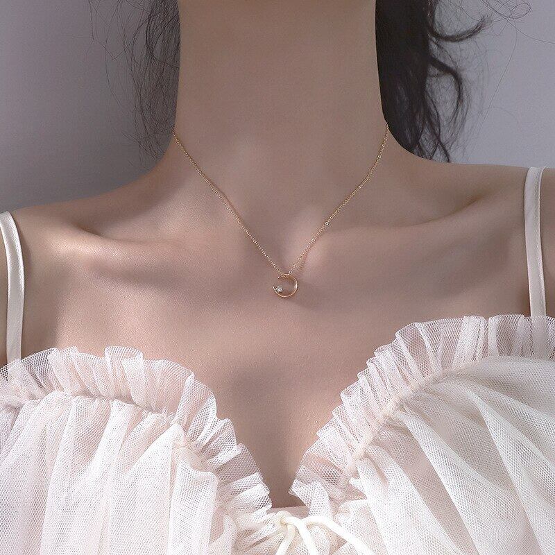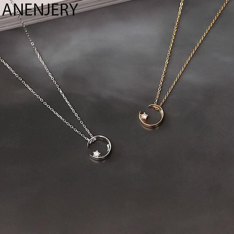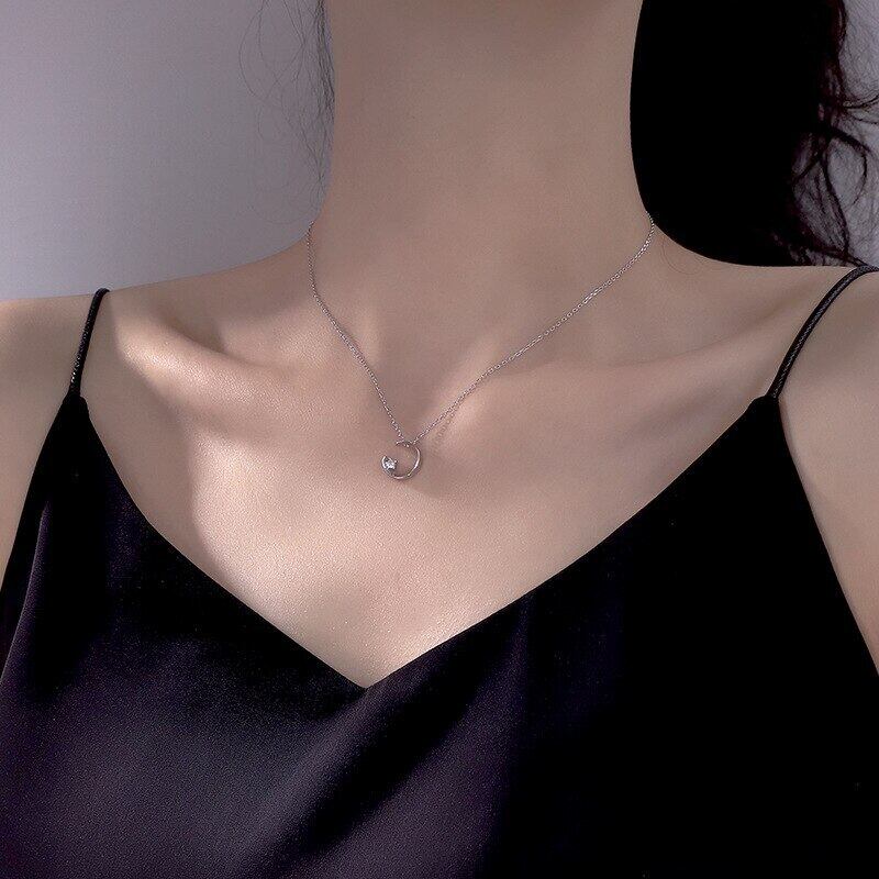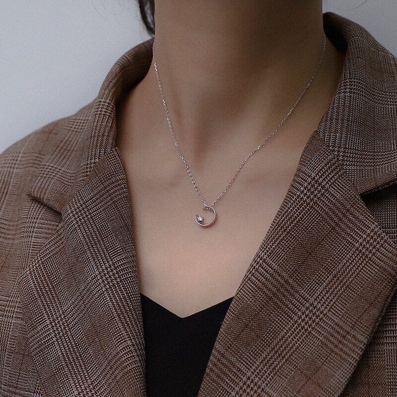 送料無料 シルバーカラーデリケートキュービックジルコンムーンチャームペンダントネックレスレディースデイリージュエリーギフトスリーカラーネックレスS-N654 レース 銀 アクセサリー AE165540345382312