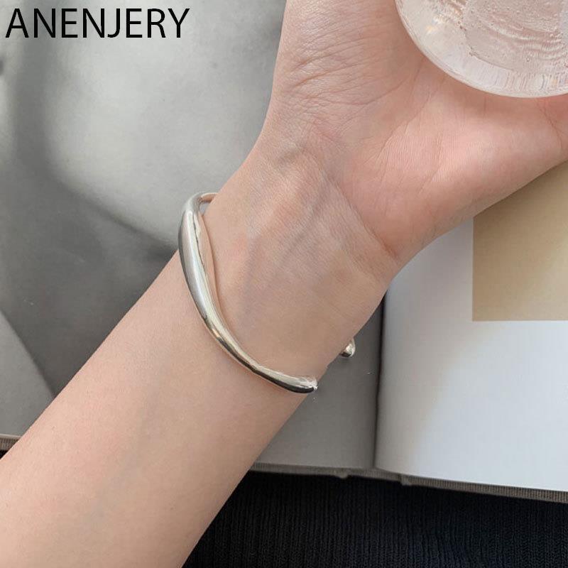 送料無料 ANENJERYシルバーカラー幾何学チャンキーバングルブレスレット女性不規則なオープンカフバングルジュエリーS-B469 銀 アクセサリー AE165581085474186