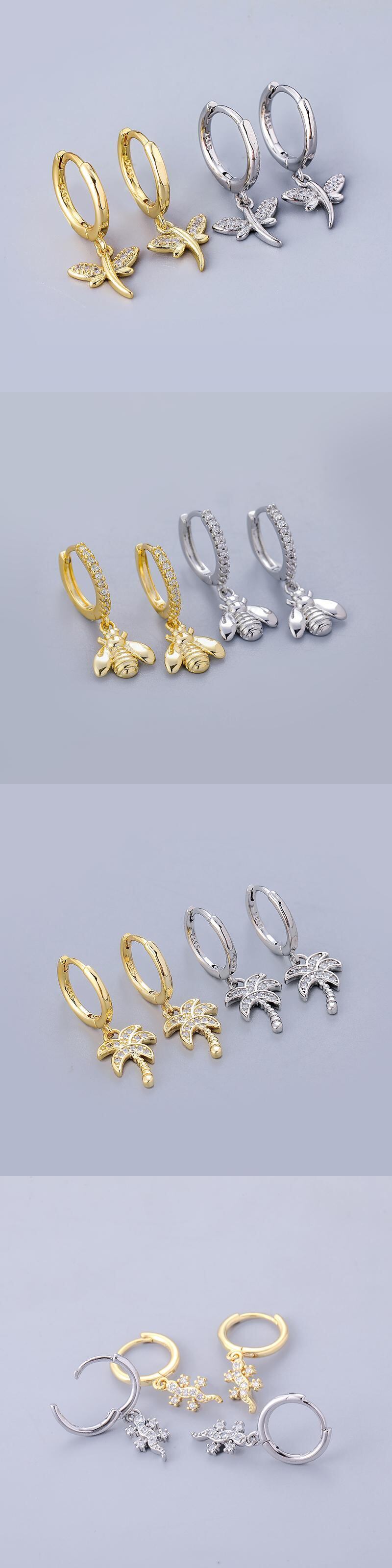 送料無料 ANENJERYシルバーカラーパーソナリティスターピアスアニマルジルコンフープピアスジュエリー イヤリング リング 指輪 銀 アクセサリー AE16559052899859