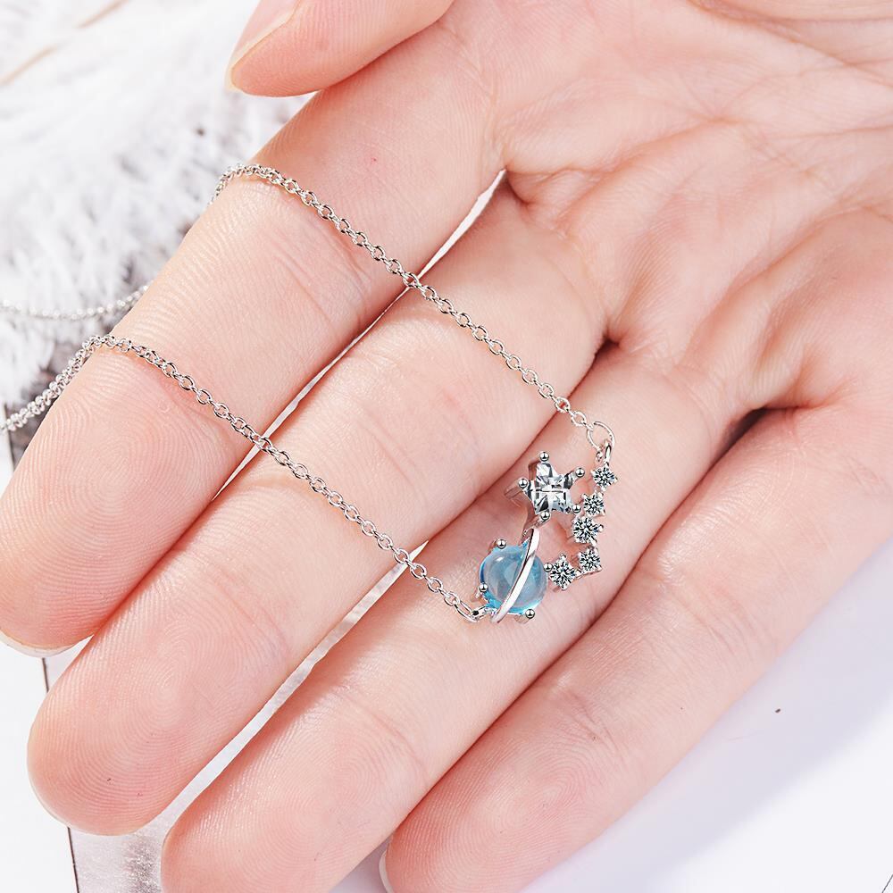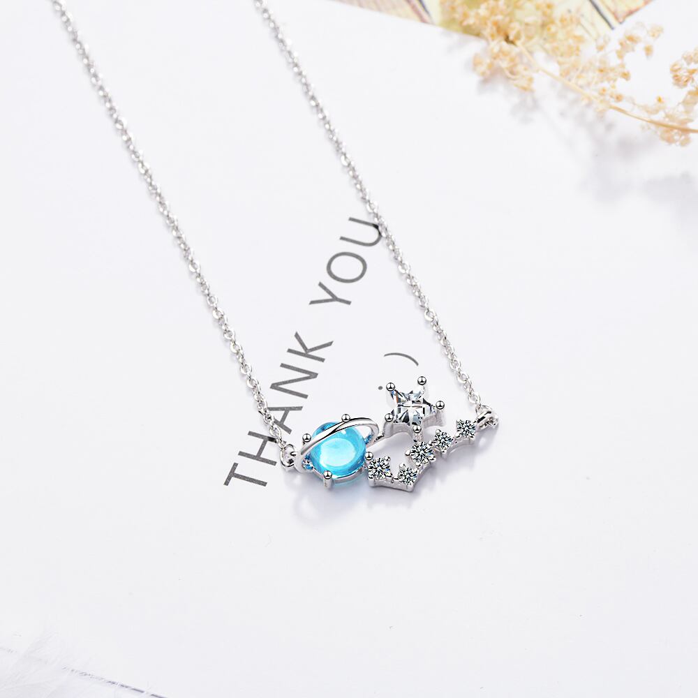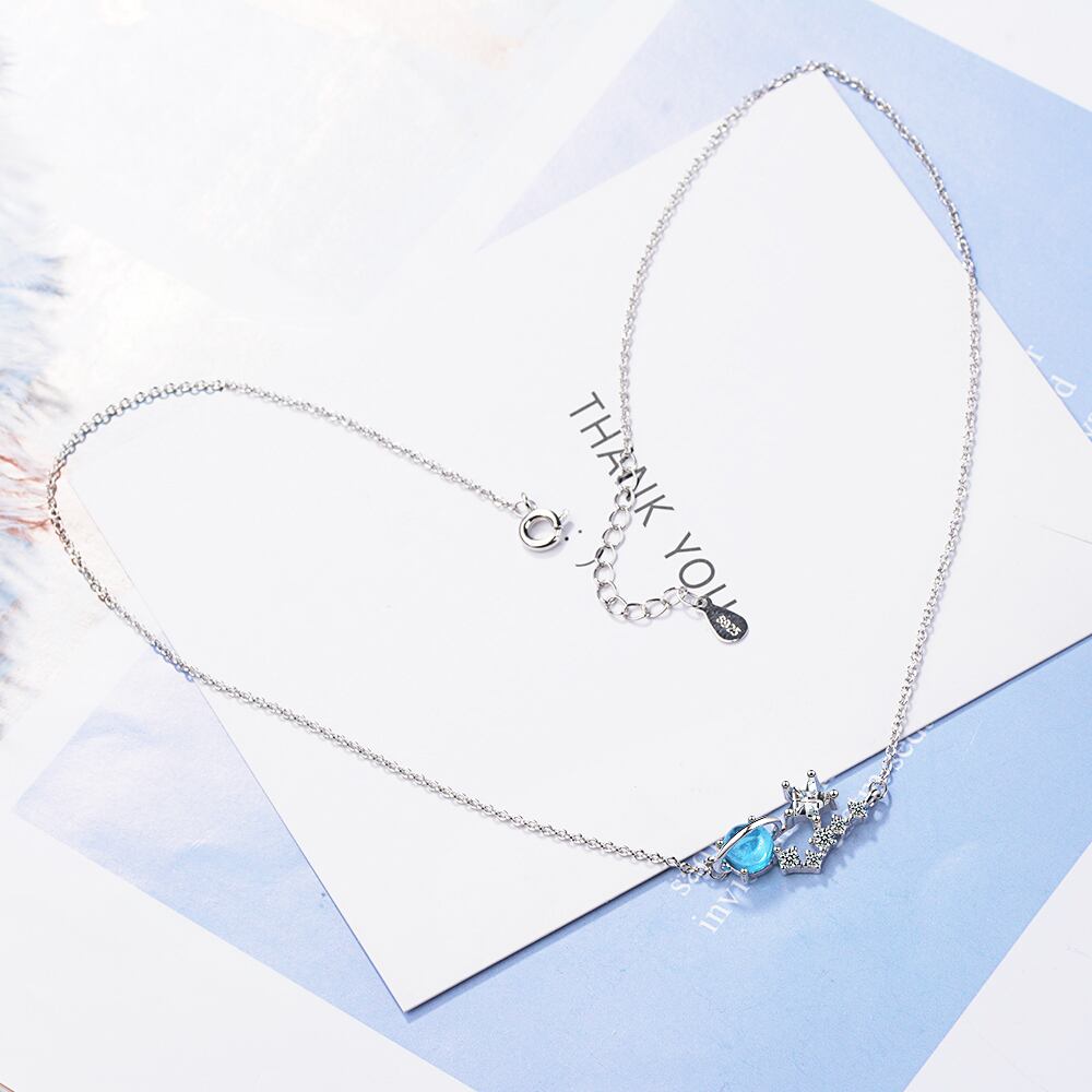 送料無料 ANENJERYシルバーカラースタープラネットペンダントチェーンネックレスブルークリスタルキュービックジルコニアネックレスチョーカーカラーS-N449 レース 銀 アクセサリー AE165514471324350