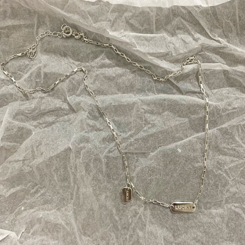 送料無料 ANENJERYシルバーカラーラッキーレターペンダントネックレスシンプルゴールド鎖骨チェーンネックレスレディースジュエリーギフトS-N572 レース 銀 アクセサリー AE165550566046291