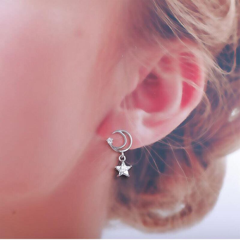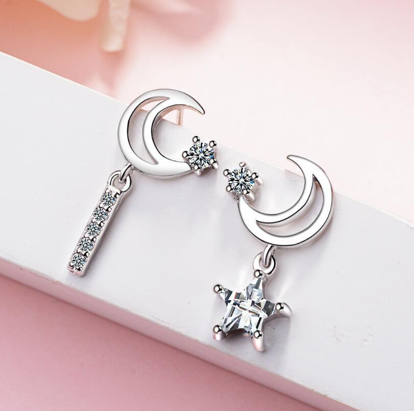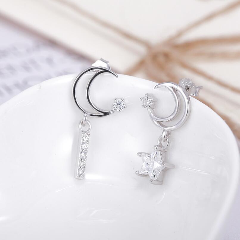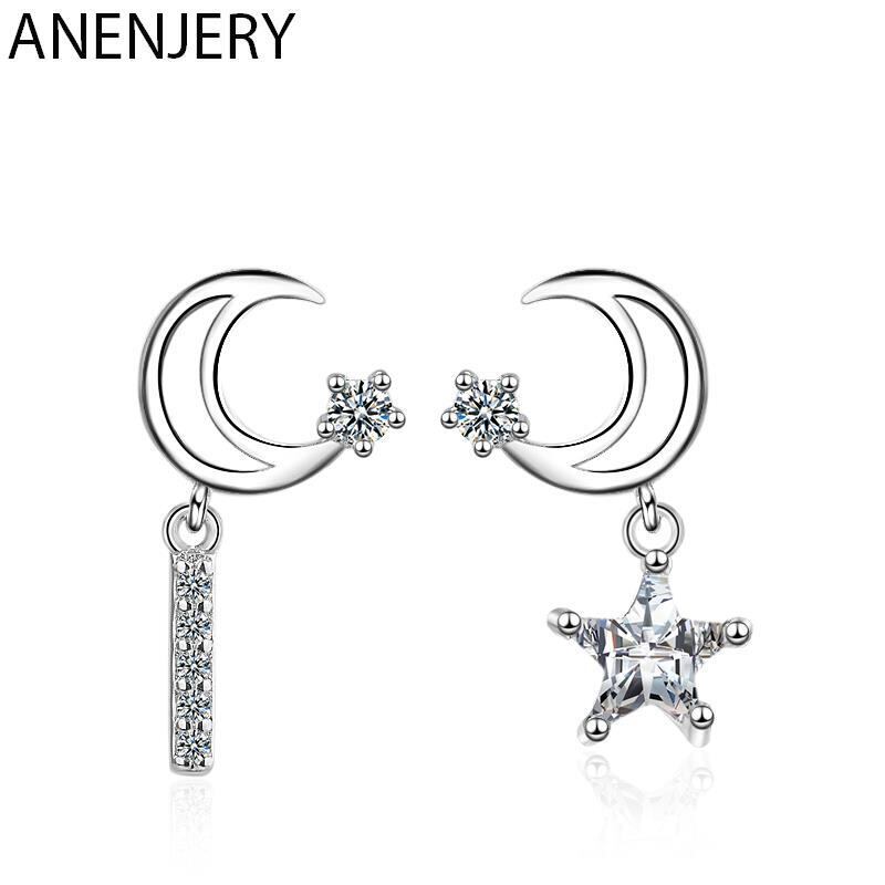 送料無料 ANENJERYシルバーカラー可憐なムーンスターセレスティアルアシンメトリーダングルピアスレディースブライドメイドギフトS-E519 イヤリング リング 指輪 銀 アクセサリー AE165569222774156