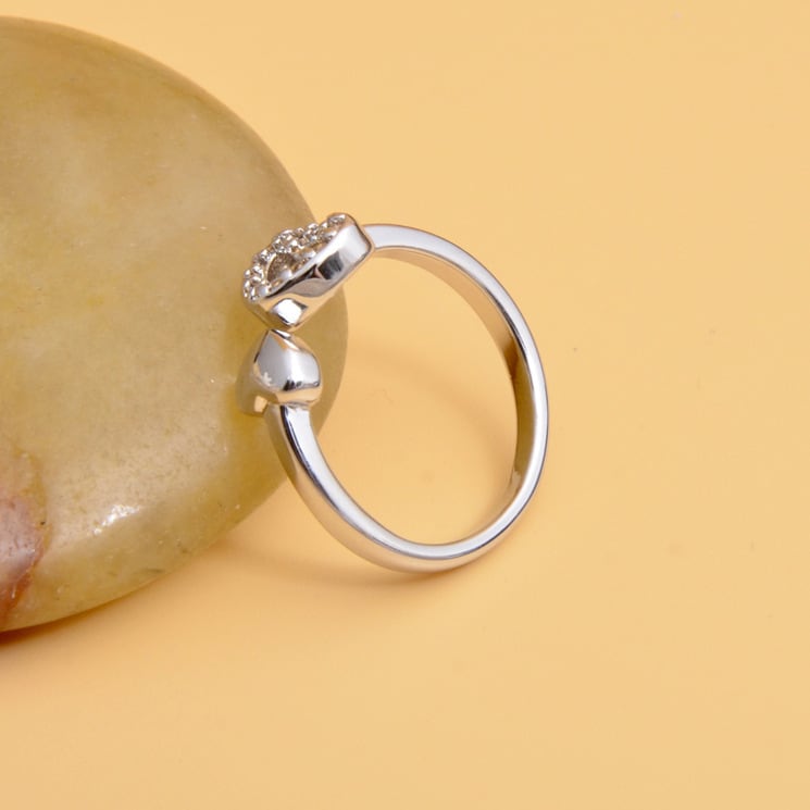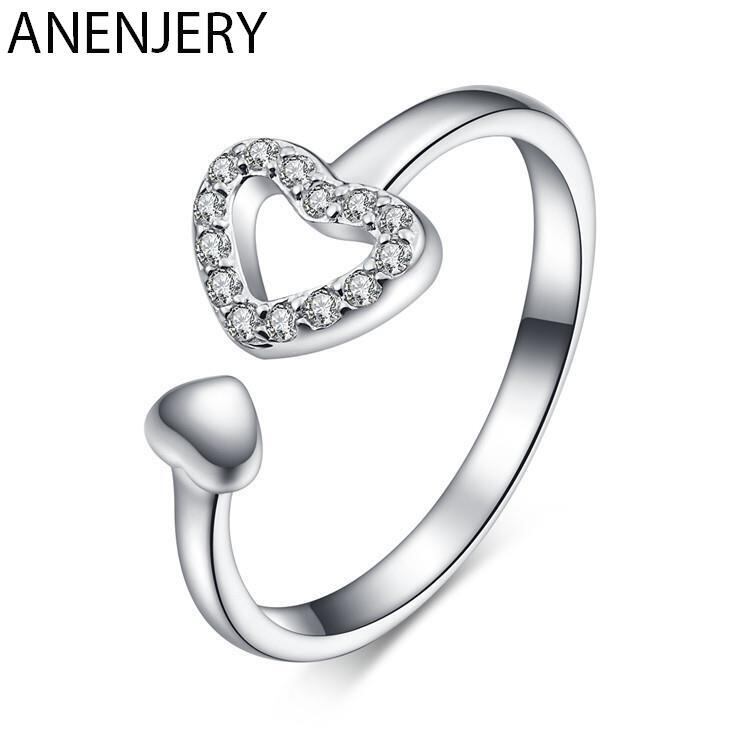 送料無料 ANENJERYシルバーカラーミニマリストダブルハートと輝くCZストーンフィンガーリングレディースジュエリーS-R75 指輪 銀 アクセサリー AE165515807687311
