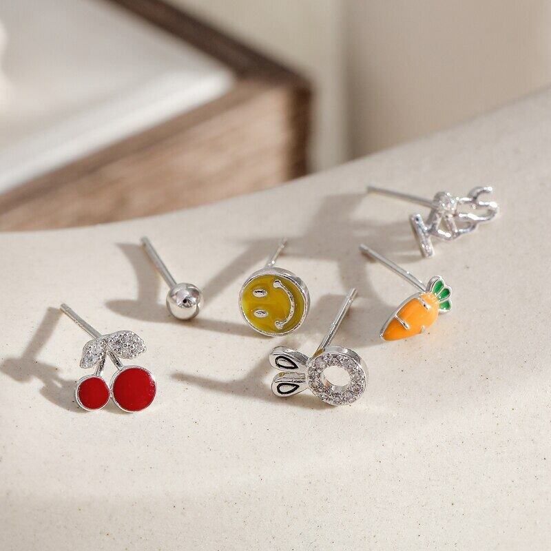送料無料 手紙笑顔アニマルフルーツスタッドピアスセットガールズスモール6ピースジルコンピアスセットレディースギフトS-E1233 イヤリング リング 指輪 アクセサリー AE165510695912665