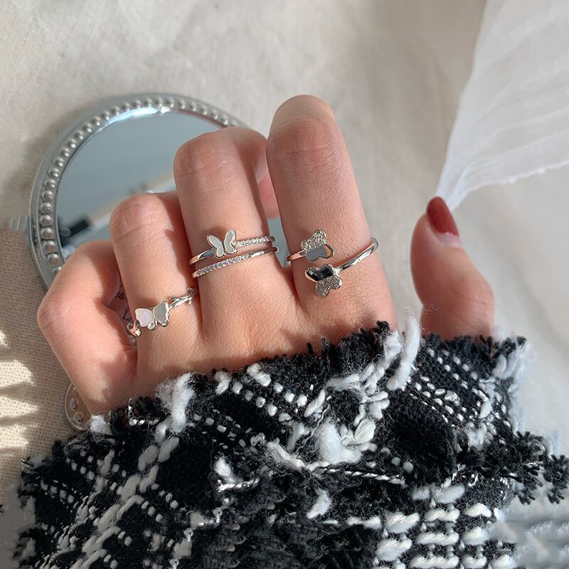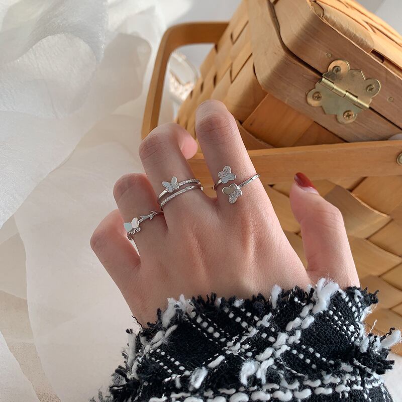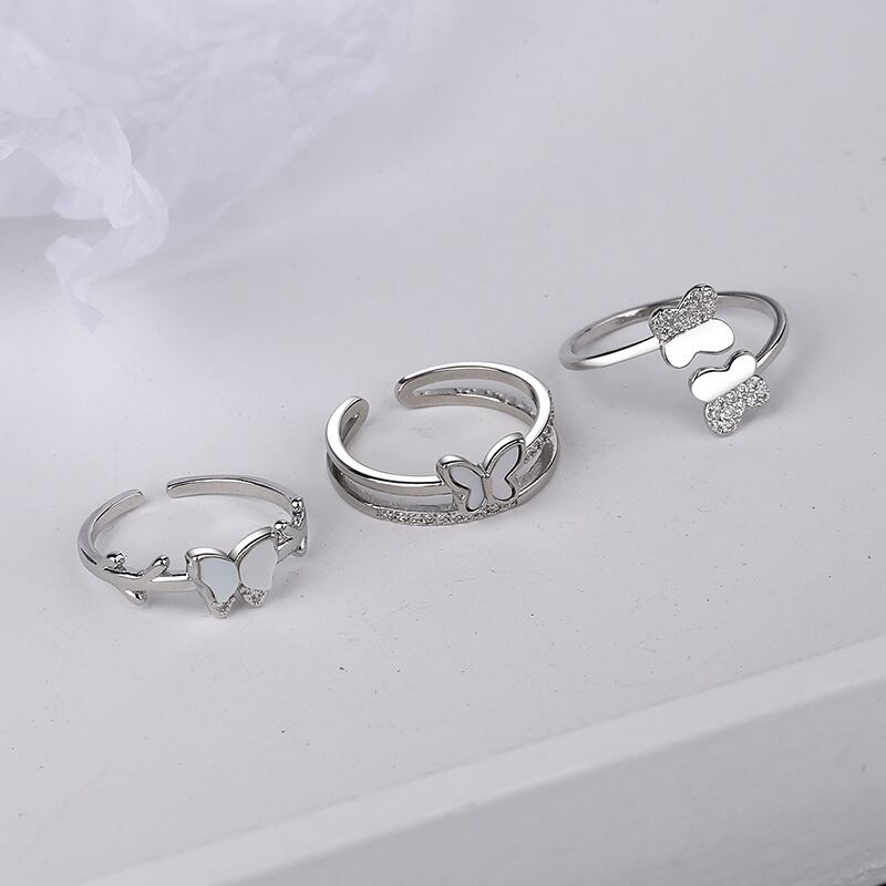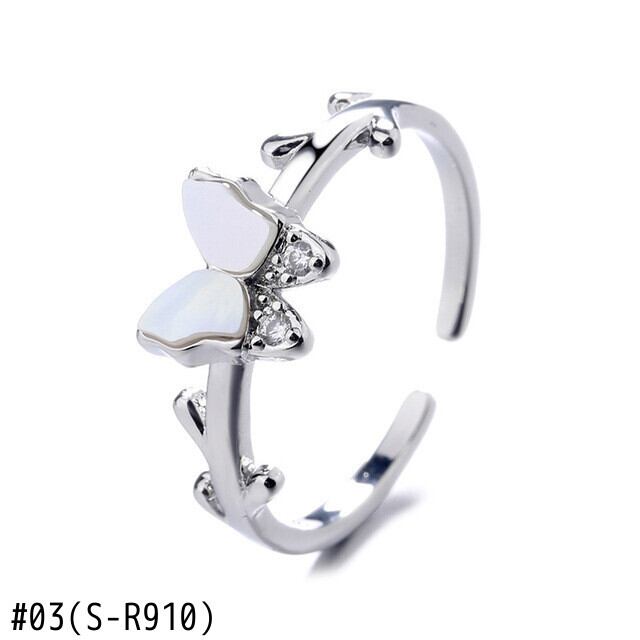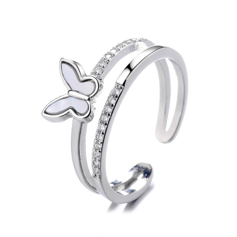 送料無料 ANENJERYシルバーカラー最も人気のあるダブルバタフライシェルジルコンリング女性ミックススタイルパーティーオープンリングデイリージュエリーS-R908 指輪 銀 アクセサリー AE165552596401556