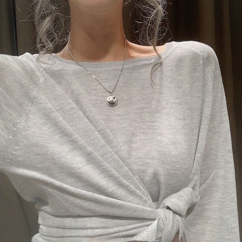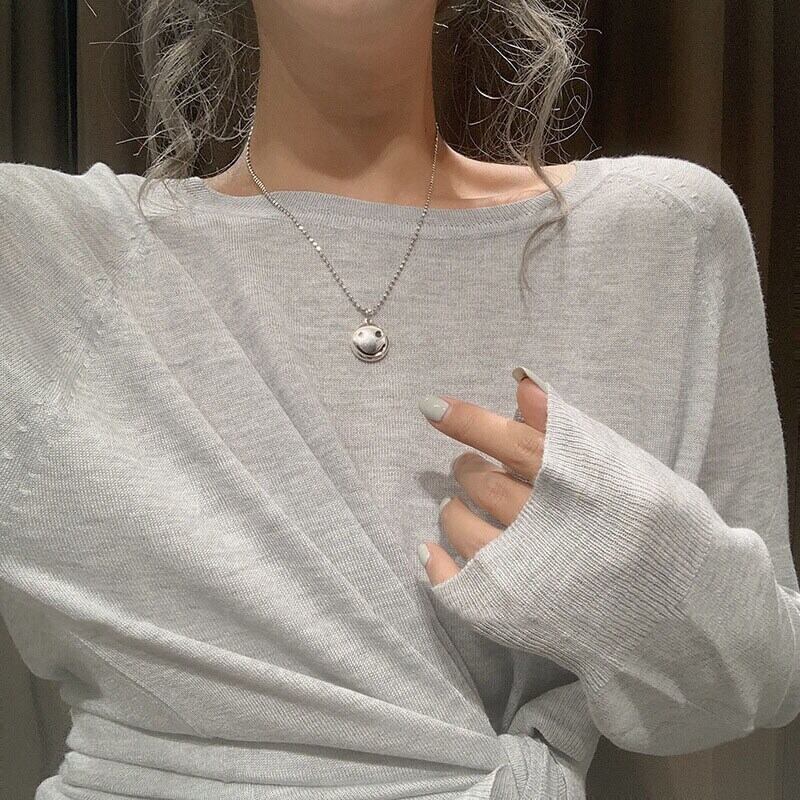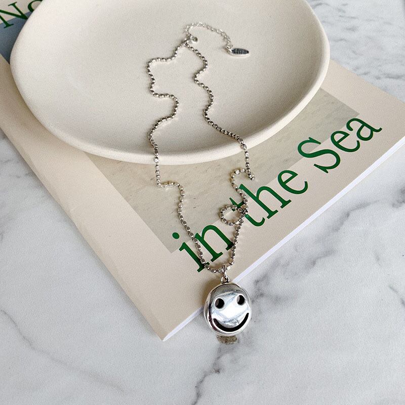 送料無料 ANENJERYシルバーカラースマイリングフェイスタイシルバーネックレスクラビクルチェーンネックレスレディースジュエリーギフトS-N597 レース 銀 アクセサリー AE165580884036959