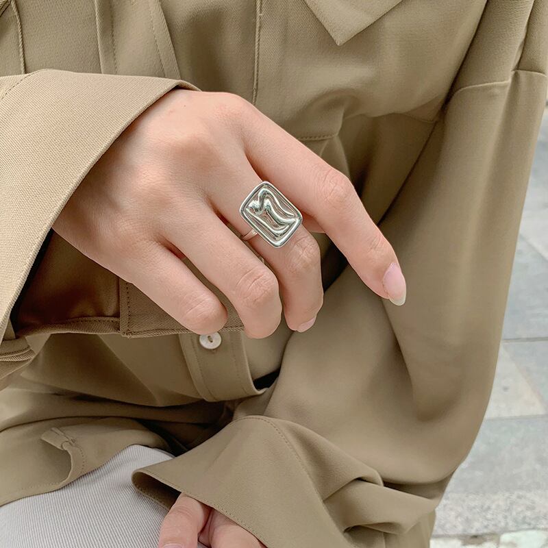 送料無料 ANENJERYシルバーカラーポリッシュ幾何学的な長方形ゴールドカラーオープンリング女性ヴィンテージジュエリーギフトS-R814 指輪 銀 ビンテージ アクセサリー AE1655779278927