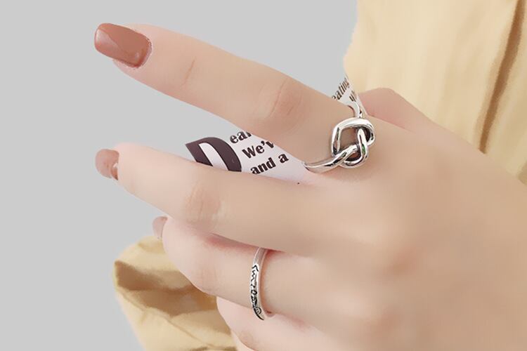 送料無料 シルバーカラートレンディノットラブハートタイシルバーカラーリングシンプルウーブンオープンリングウィメンズパーティーギフトS-R632 指輪 銀 アクセサリー AE165593827984238