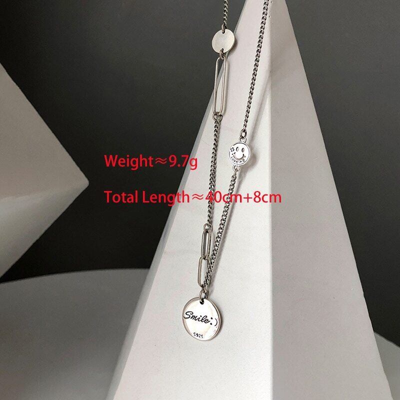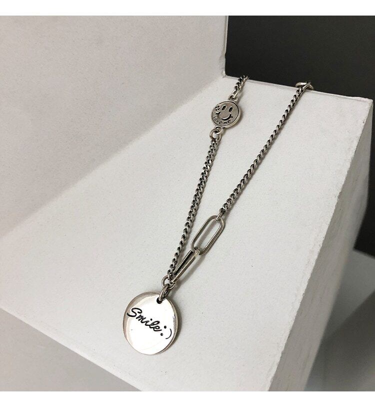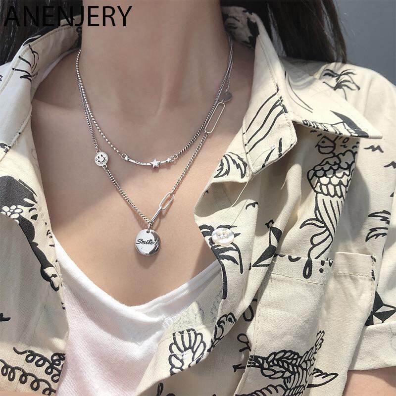 送料無料 ANENJERYシルバーカラースタースマイルフェイスラウンドディスクレターペンダントネックレスタイシルバーネックレスレディースメンズジュエリーS-N659 レース 銀 アクセサリー AE16557981914830