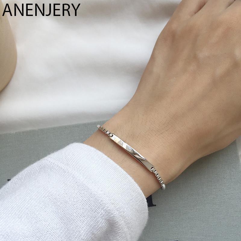 送料無料 ANENJERYシルバーカラースムースレクタングルボックスチェーンチャームブレスレットヴィンテージブレスレットレディースメンズジュエリーギフトS-B339 銀 ビンテージ アクセサリー AE165571229652527