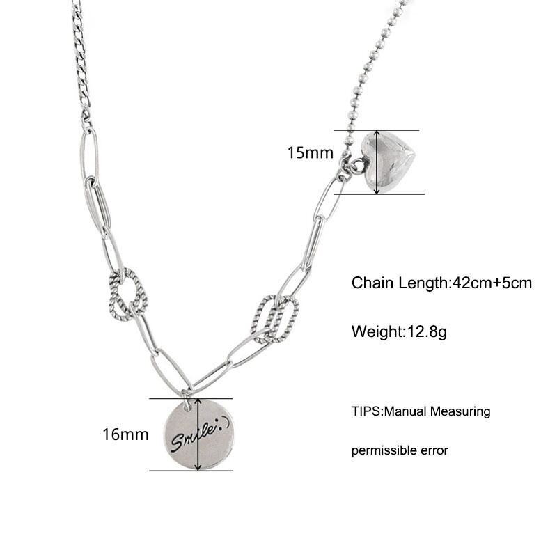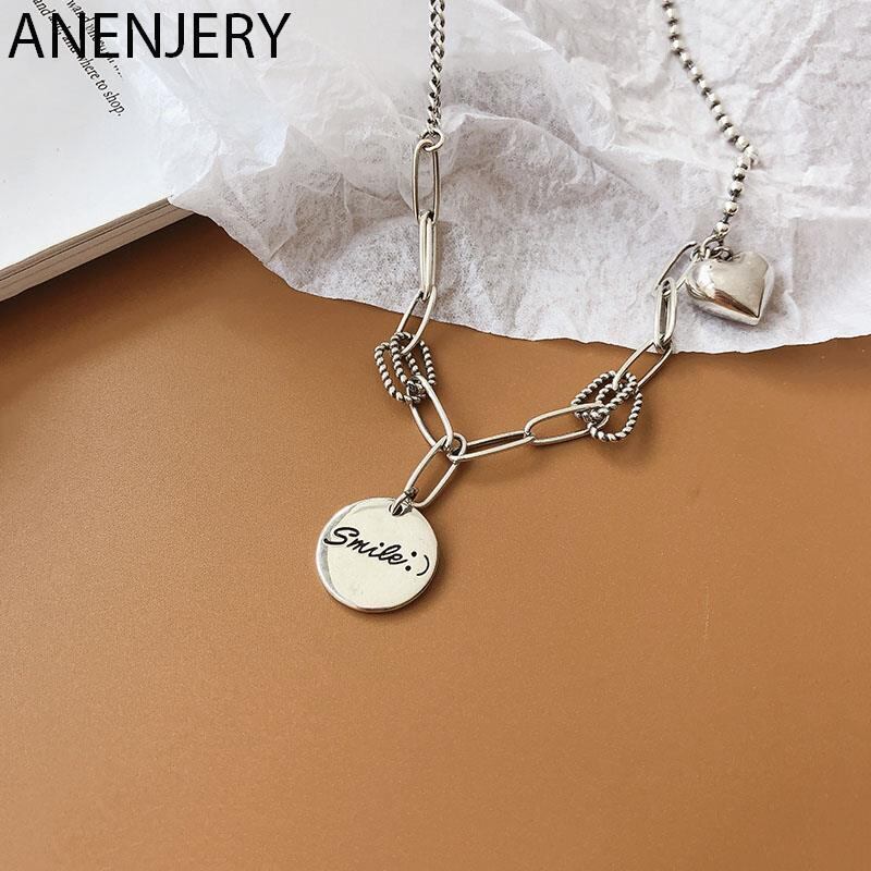 送料無料 ANENJERYシルバーカラーラブハートラウンドディスクタイシルバーネックレススマイルチャームネックレスレディースジュエリーギフトS-N596 レース 銀 アクセサリー AE165510697525006