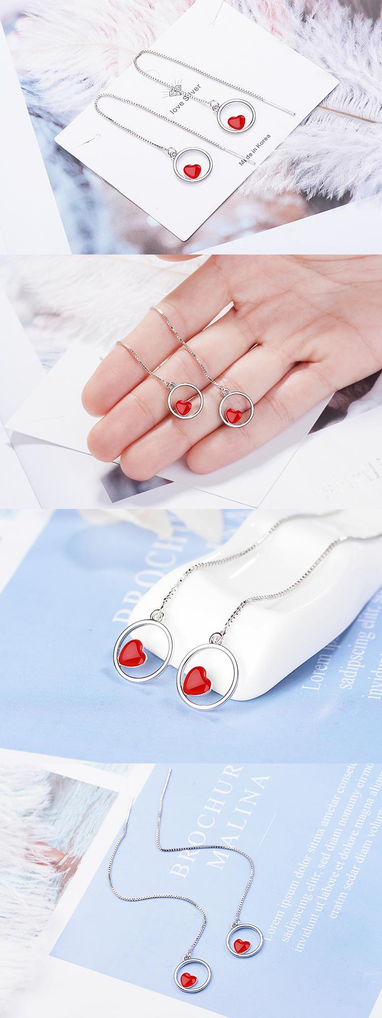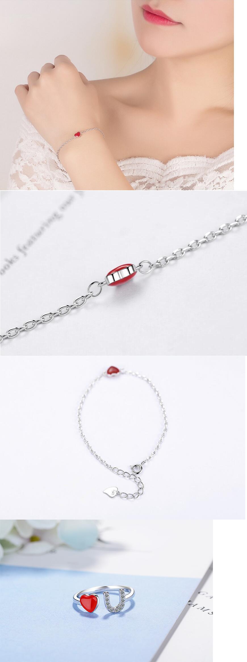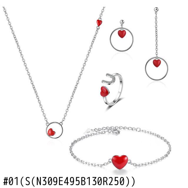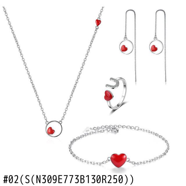 送料無料 ANENJERYシルバーカラーデリケートレッドラブハートジュエリーセットネックレスイヤリングリングブレスレットジュエリーレディースガールズパーティーギフト レース 指輪 銀 アクセサリー AE165515497319700