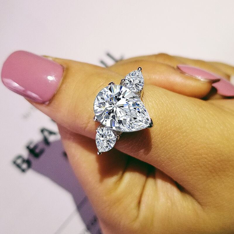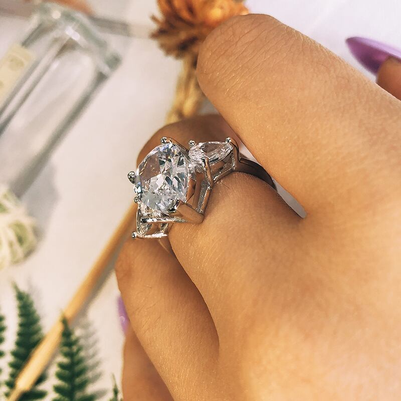 送料無料 到着梨カットシルバーカラーデザイナーリング女性高級結婚式婚約ジュエリー特別なユニークなR1904 指輪 銀 アクセサリー AE0011669892572844