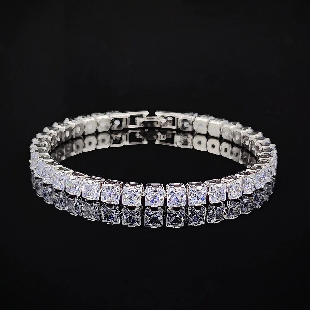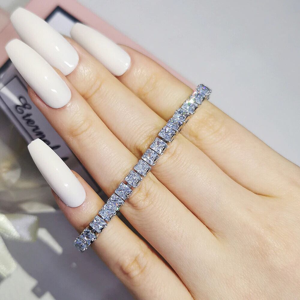 送料無料 202218cmスクエアシルバーカラーテニスブレスレットバングルオンハンドウィメンズアニバーサリーギフトジュエリーS7207 銀 スクウェア アクセサリー AE00116646294657677