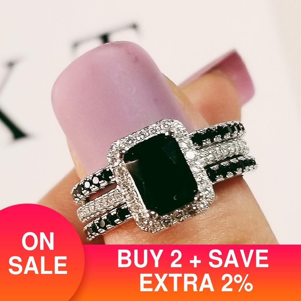 送料無料 シルバーカラーの花嫁のウェディングリングセット3in1バンドリング女性の婚約ブライダルジュエリーフィンガーブラックフライデーR1997x 指輪 銀 アクセサリー AE00116640913300934