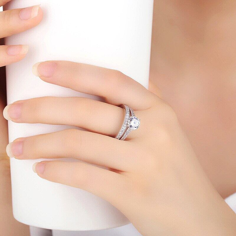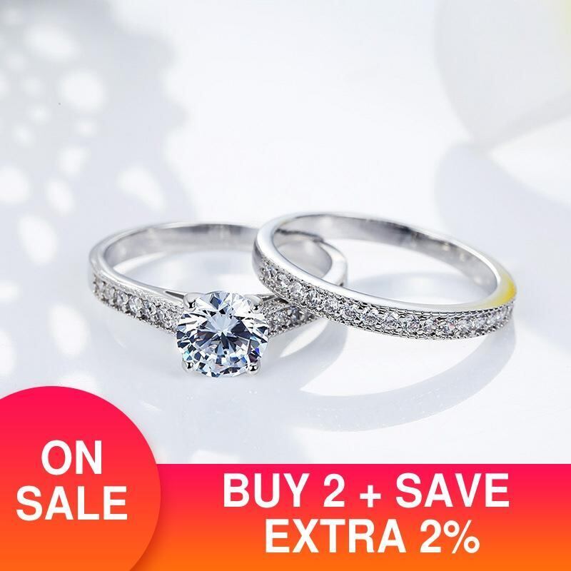 送料無料 2022年ラグジュアリーハローシルバーカラー花嫁結婚指輪セット女性記念日ギフトジュエリーR5865 リング 銀 アクセサリー AE00116657055917549