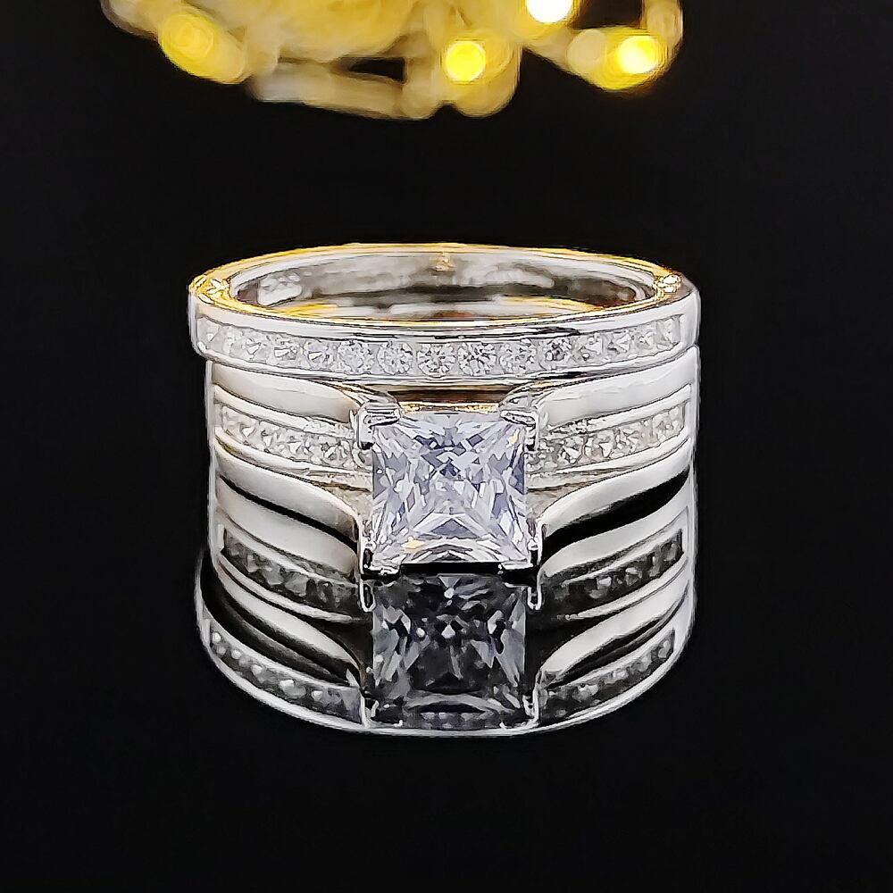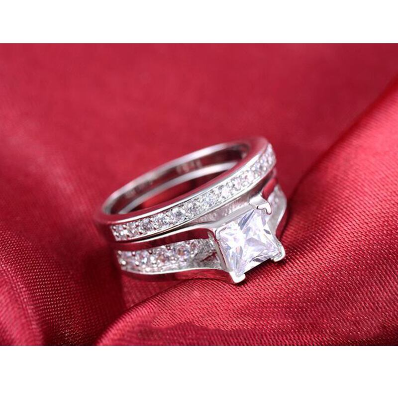 送料無料 ブラックフライデーリアル925スターリングシルバーAAACZカット結婚指輪セットレディースジュエリーエンゲージメントR3401S 銀 アクセサリー AE00116617924888395