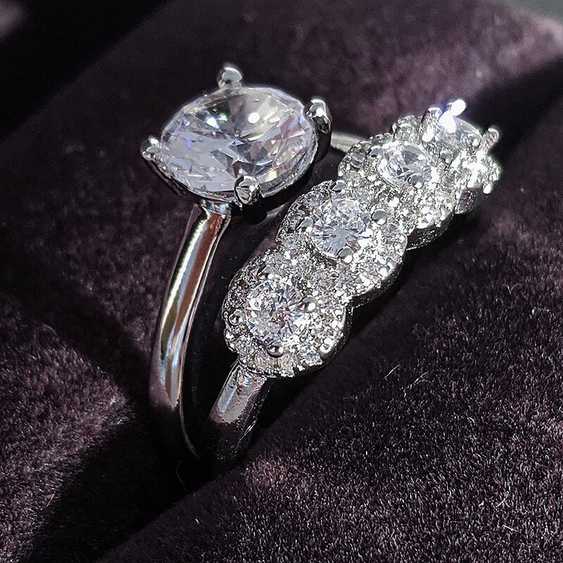 送料無料 2022シルバーカラー花嫁ジュエリースターリングシルバー婚約と結婚指輪セットカップルリングR5501 銀 アクセサリー AE00116672446988315