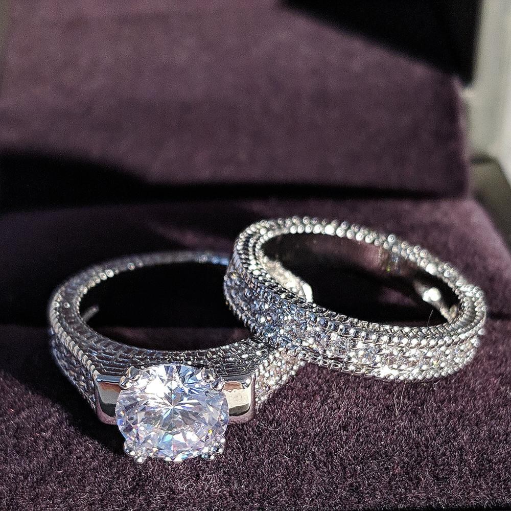 送料無料 新しいデザインブラックフライデーシルバーカラー花嫁リングセットブライダル2ピース女性婚約除草高級指ジュエリーr4434 指輪 銀 アクセサリー AE00116643922135117