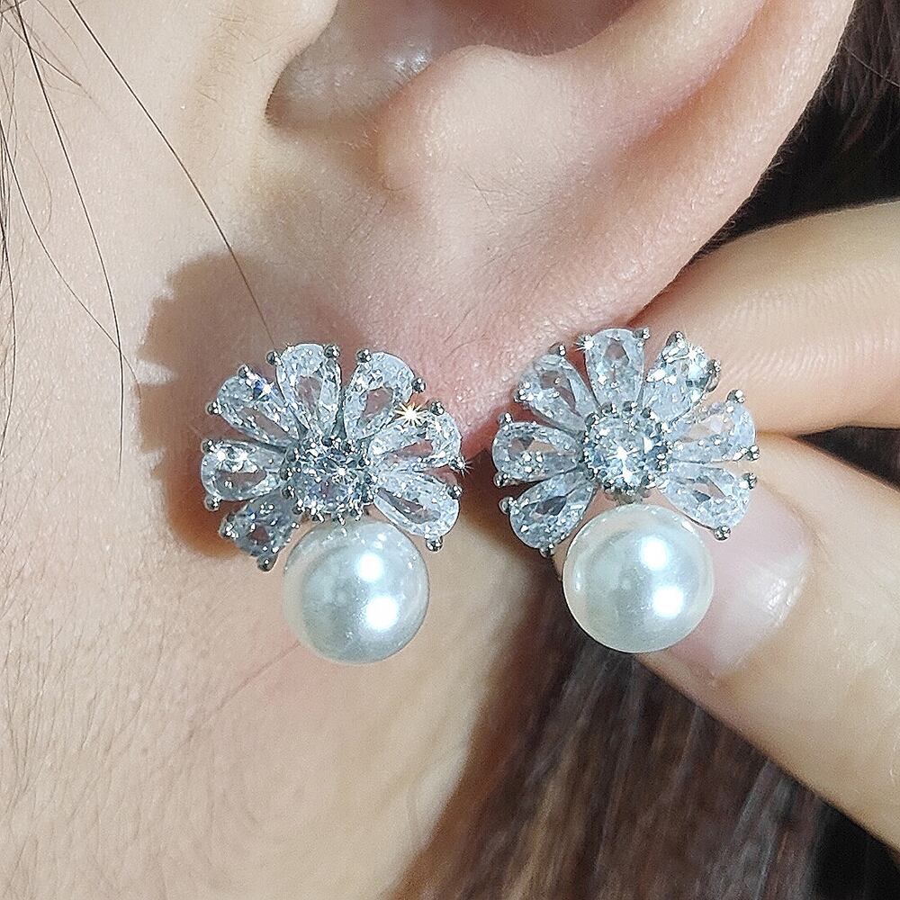 送料無料 2022年の豪華な雪片をシミュレートした真珠のイヤリング女性の結婚記念日ギフトジュエリーE6493 パール 指輪 人工 アクセサリー AE00116671447966974