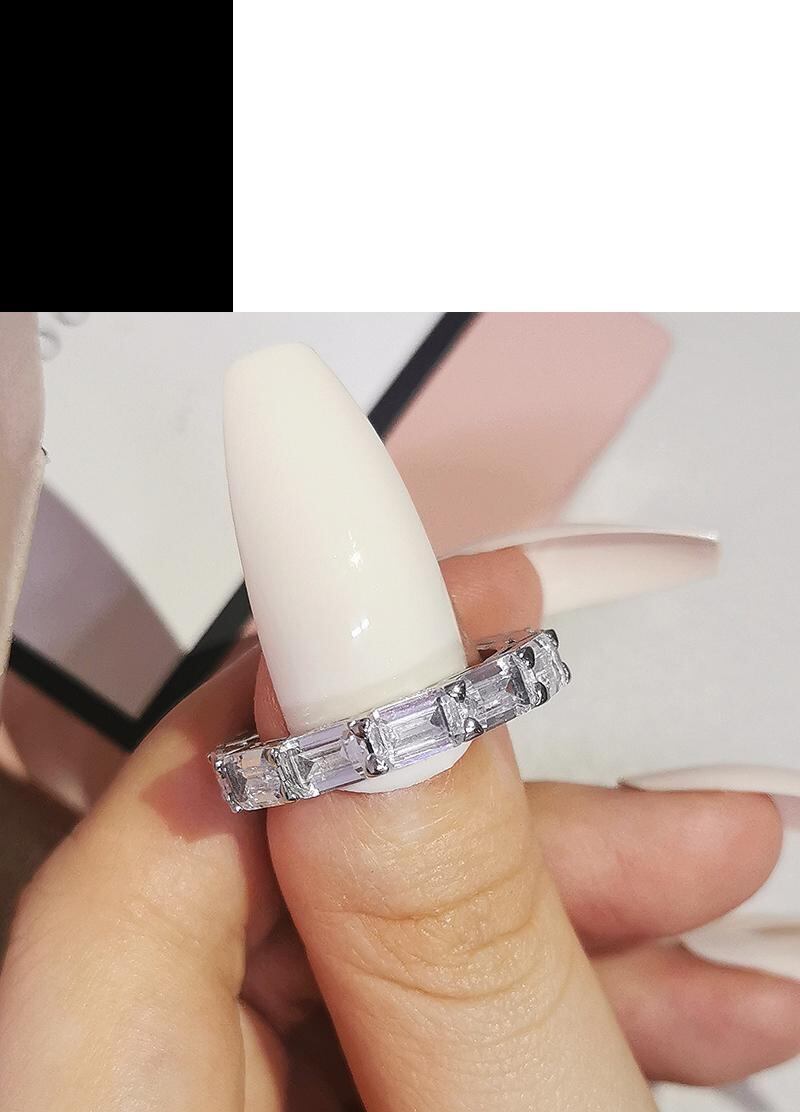 送料無料 2022年ラグジュアリーエメラルドカットシルバーカラーエステニティバンドリングウェディングウィメンズパーティーギフトジュエリーZ18 指輪 銀 翠玉 緑玉 アクセサリー AE00116652156728148