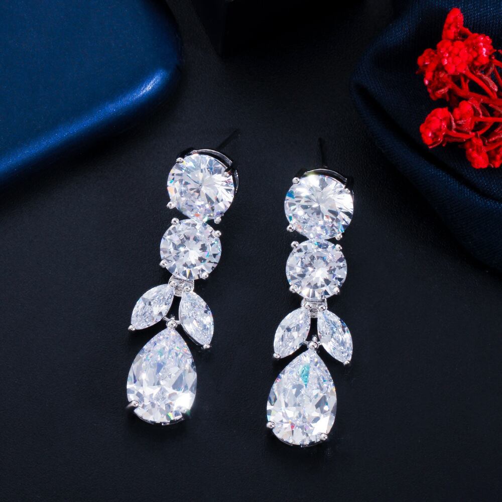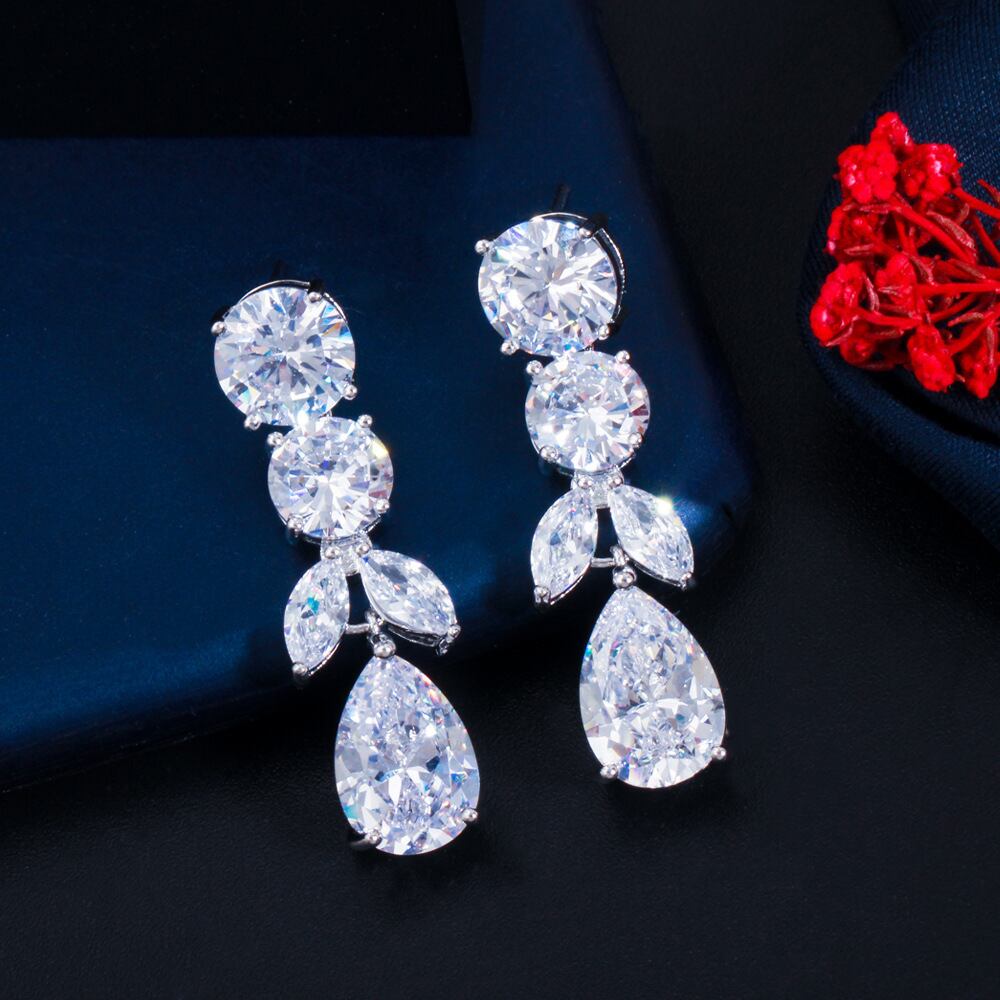 送料無料 2022高級シルバーカラーイヤリング女性が長耳のウェディングギフトジュエルアイテムをぶら下げるE7092 ロング 指輪 銀 アクセサリー AE00116656156761419
