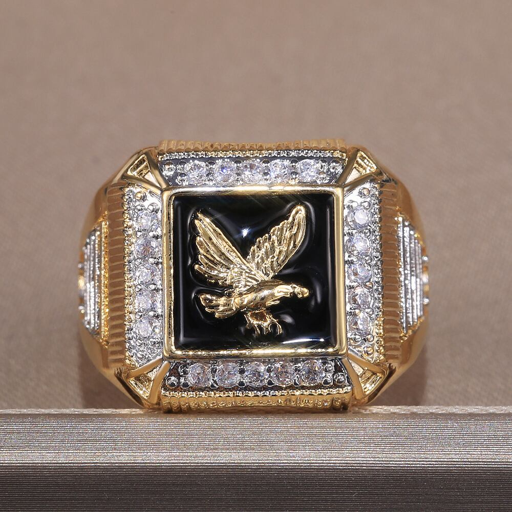 送料無料 2022ラグジュアリーゴールドカラーホークメンズリングアニバーサリーギフトジュエリーR6906 指輪 アクセサリー AE00116639187805501