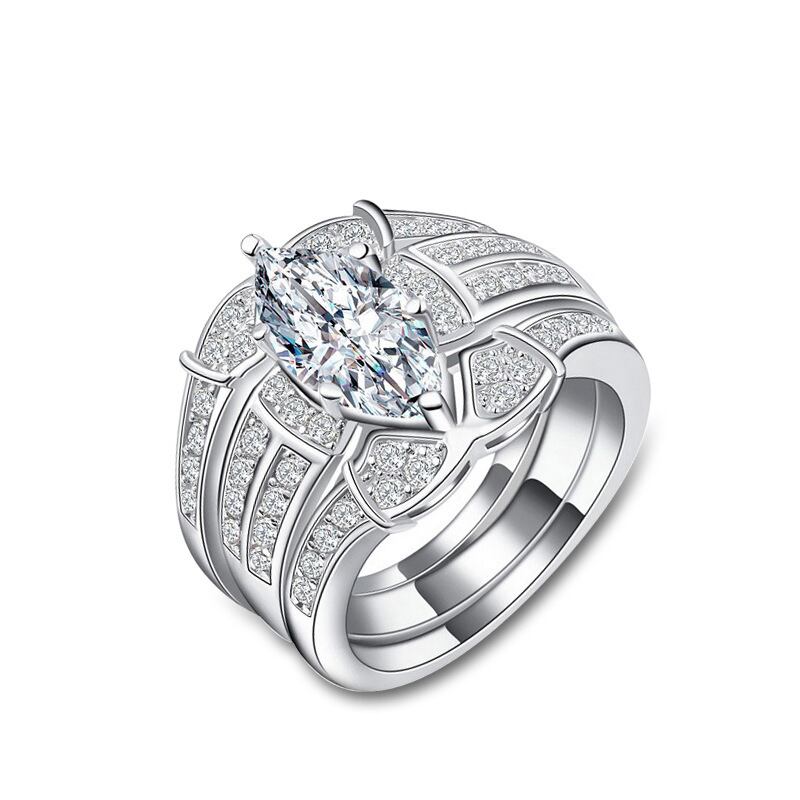 送料無料 2022年新しい高級マーキスシルバーカラー花嫁結婚指輪セット女性女性記念日ドロップシッピングブラックフライデーR5086 リング 銀 アクセサリー AE00116698987486690