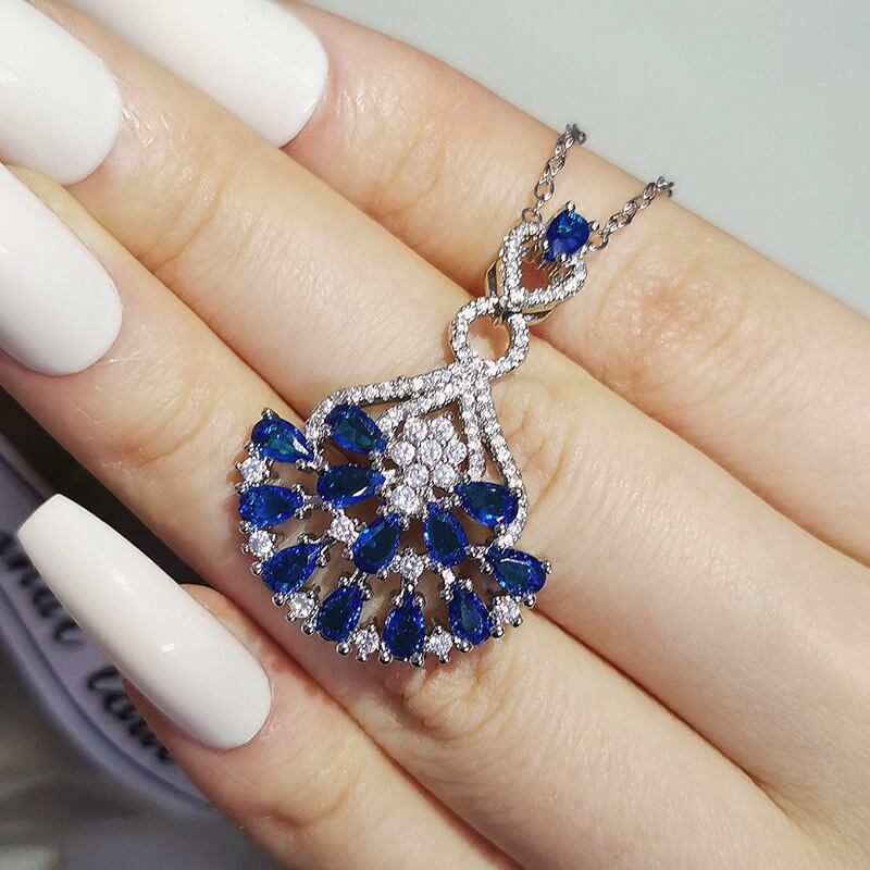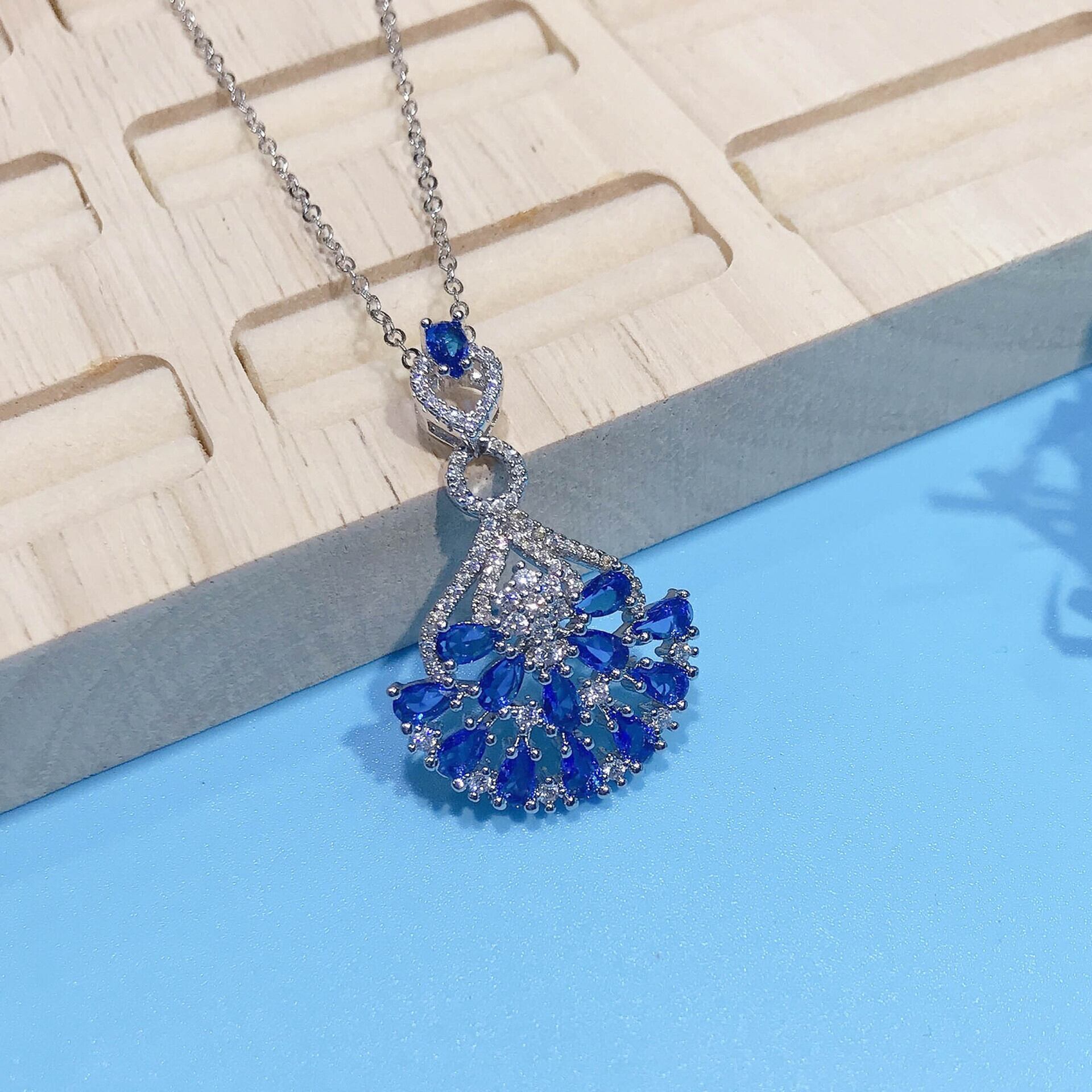 送料無料 2022トレンディブルーカラースカートシルバーカラーネックネックレスレディースアニバーサリーギフトジュエリーX6865 レース 銀 アクセサリー AE00116689376948008