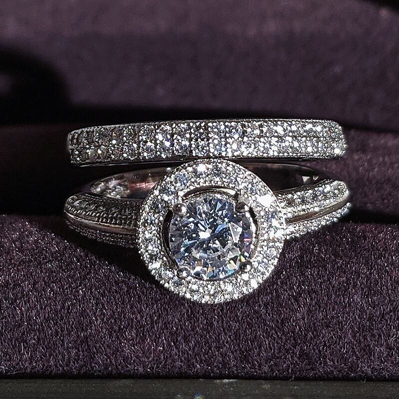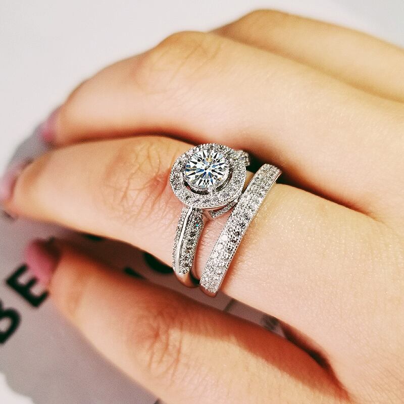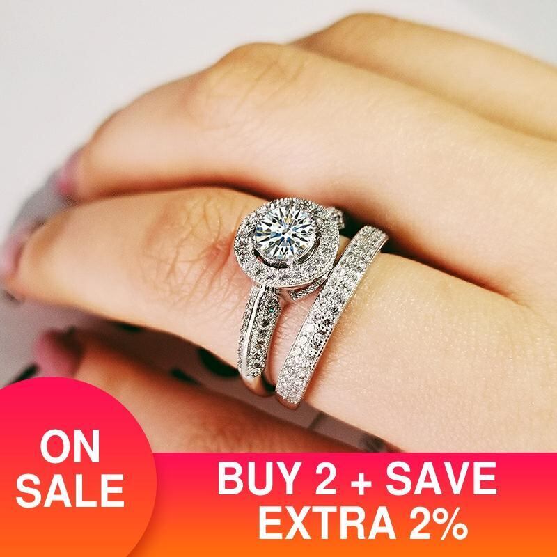 送料無料 2022年新しい高級ハローシルバーカラー花嫁結婚指輪セット女性女性記念日ジュエリーバルク販売ブラックフライデーR5140 リング 銀 アクセサリー AE00116695577823134