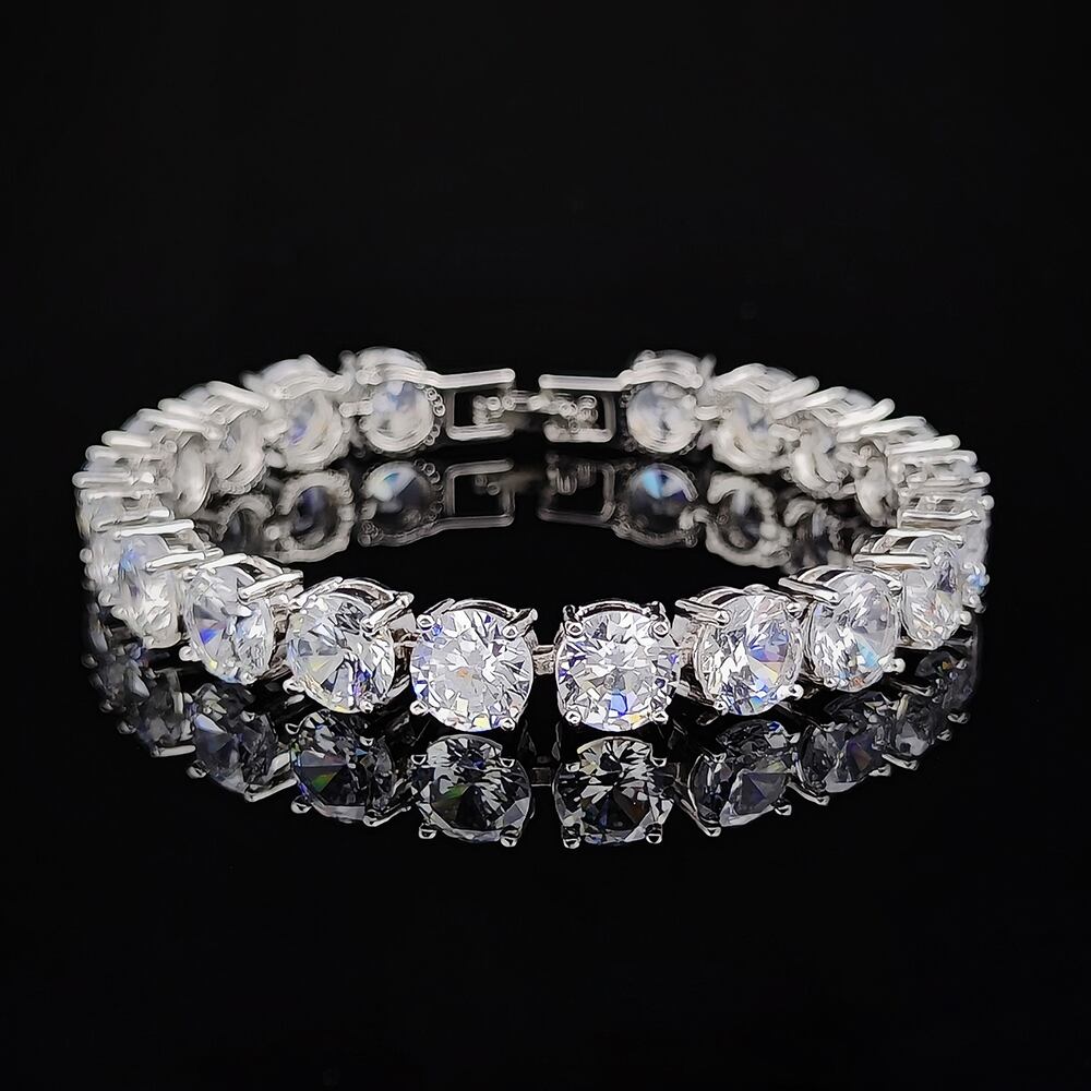 送料無料 手持ちの高級8mmラウンドCZシルバーカラーテニスブレスレット&バングルレディースジュエリーウェディングバレンタインデーギフトS7217 銀 アクセサリー AE00116646121309662