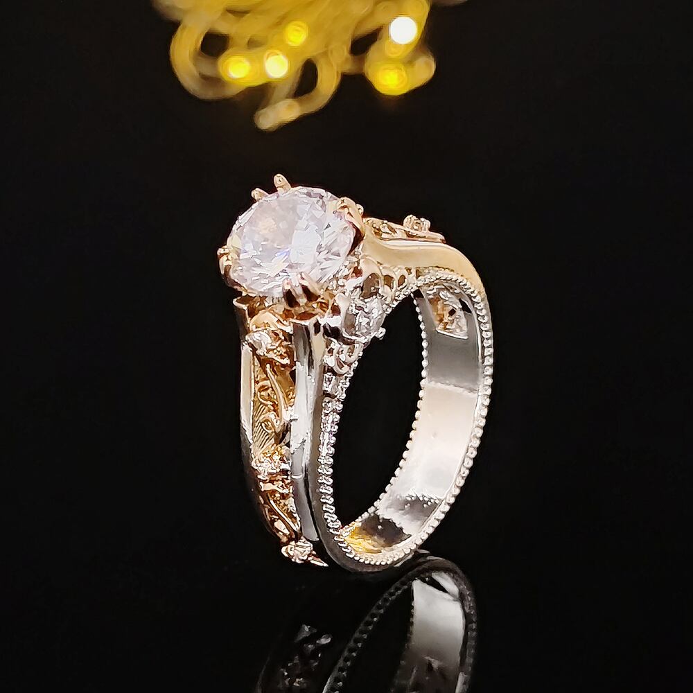 送料無料 2022ラグジュアリーゴールドシルバーカラーハローエンゲージリングウィメンズアニバーサリーギフトジュエリーR6215 指輪 銀 アクセサリー AE00116669342451299