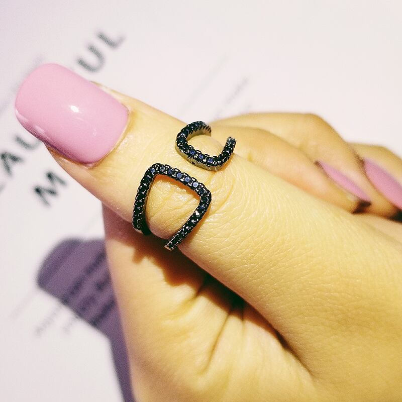 送料無料 シルバー/ゴールドカラーブラックジルコニアバグアネルプロミスファッションアジャスタブルオープンリング女性指卸売ジュエリーR4674 指輪 銀 風信子石 アクセサリー AE0011661459477041