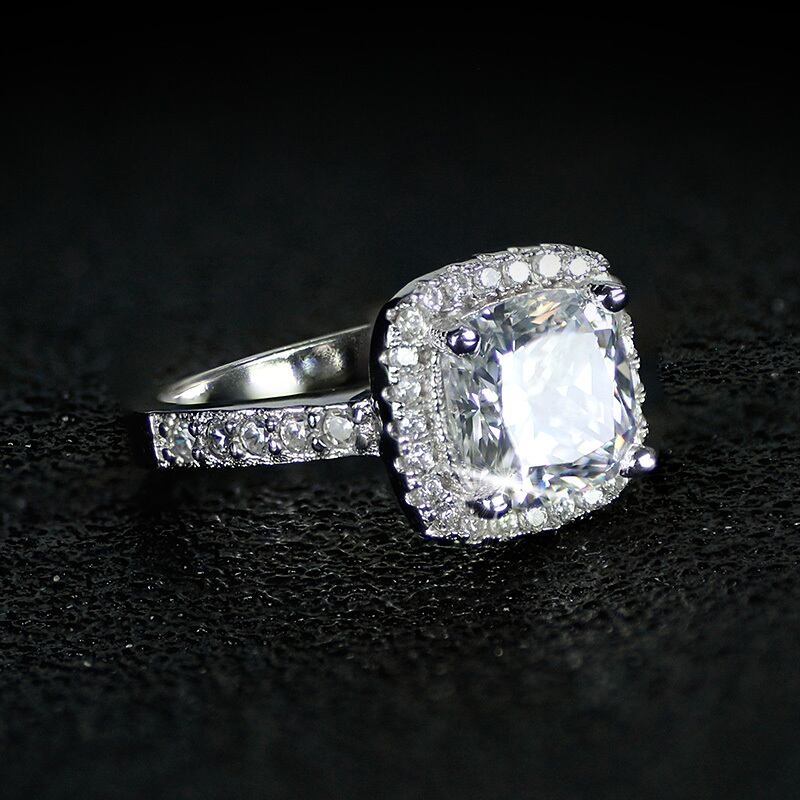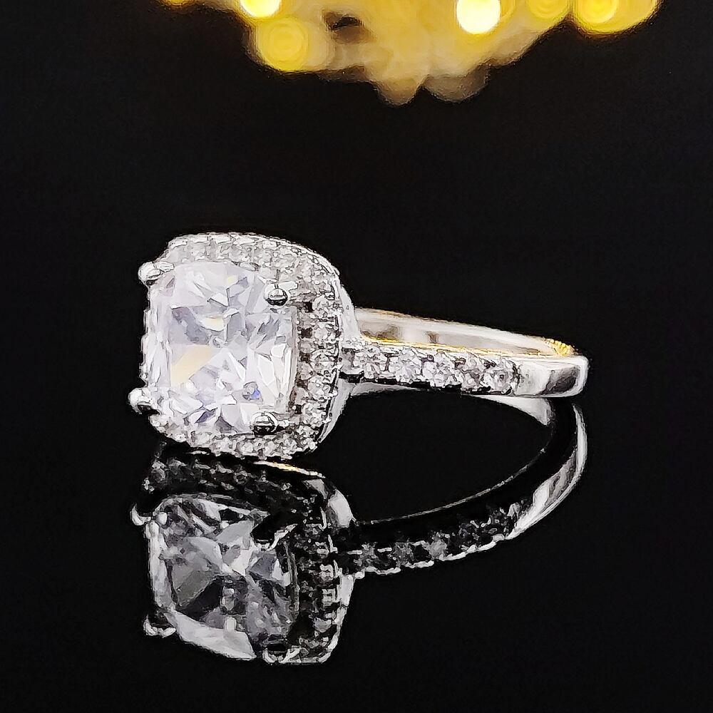 送料無料 シルバーカラーデザイナークッションカットフィンガーリングセットレディースジュエリーピュアウェディングエンゲージリングパーソナライズR820A 指輪 銀 アクセサリー AE00116622728905636