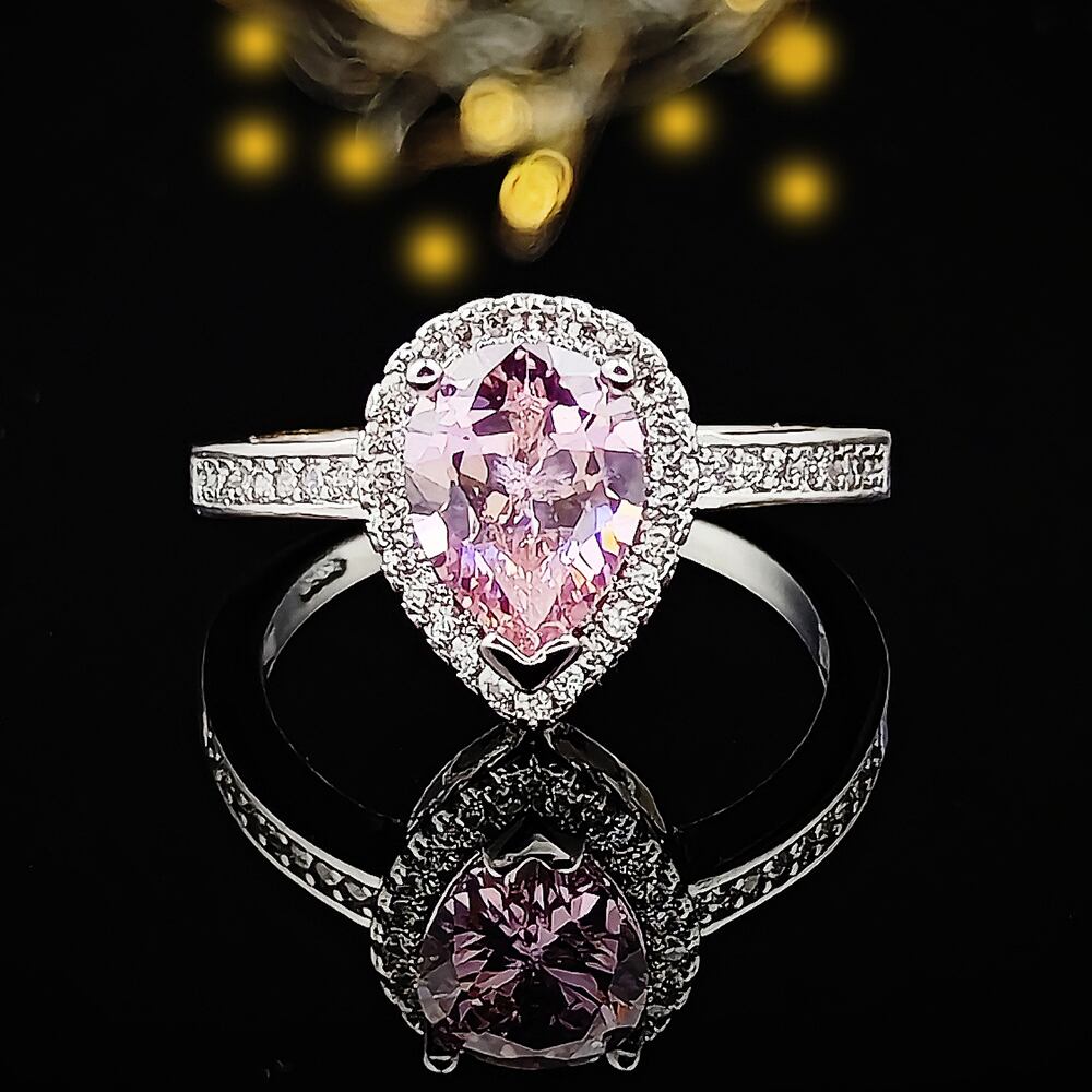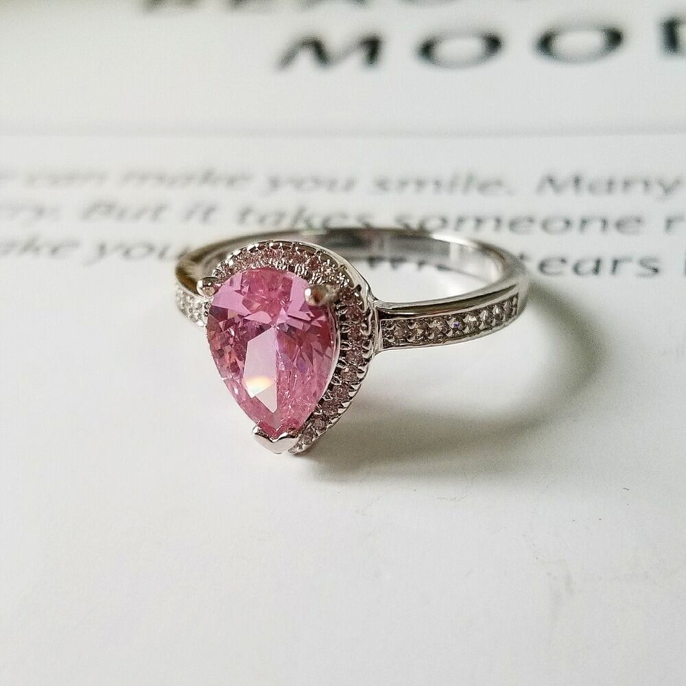 送料無料 リアルシルバーカラーペアカットジルコンエンゲージリングウィメンズウェディングアネルアネイパーティーパーソナライズR603-ピンク 指輪 銀 アクセサリー AE00116645649976771