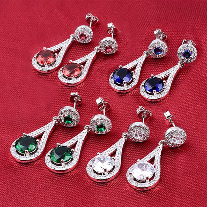送料無料 シルバーカラーダングルビッグロングイヤリング女性トレンディブルーグリーンレッドガールラブギフトジュエリーE514 銀 アクセサリー AE00116612997132716