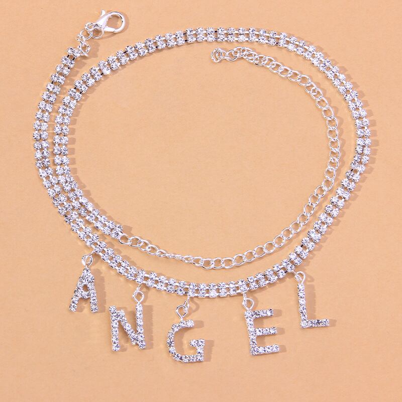 送料無料 2022ゴールドシルバーカラーエンジェルレターフットチェーンウィメンズパーティーギフトジュエリー7142 銀 アクセサリー AE00116668646869333