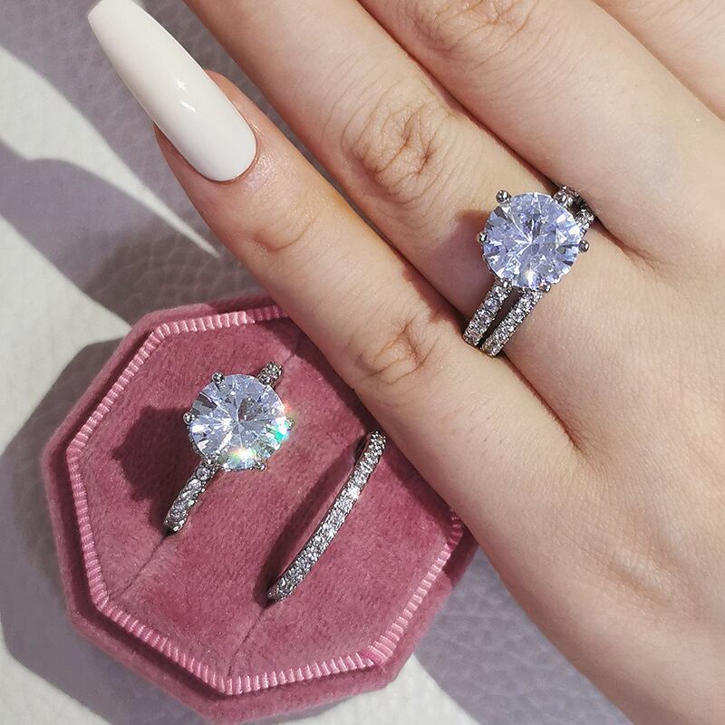 送料無料 2022年新しい高級ハローシルバーカラー花嫁結婚指輪セット女性女性記念日ジュエリー一括販売R5155 リング 銀 アクセサリー AE00116698825209255