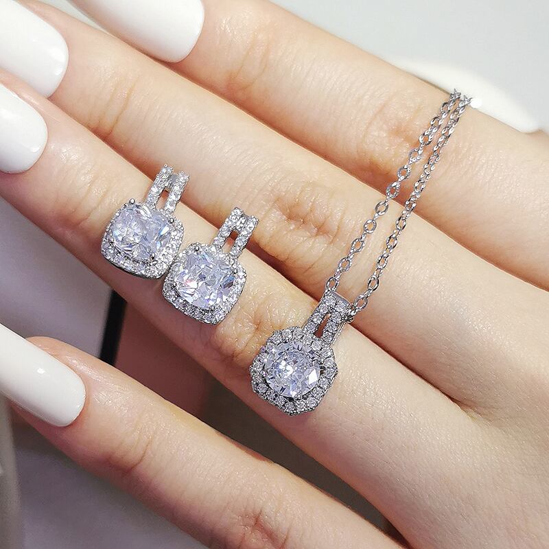 送料無料 2ピースパックシルバーカラー花嫁ジュエリー婚約指輪ネックレスペンダントウェディングブライダルジュエリー女性イヤリングJ6979 レース 銀 アクセサリー AE00116644214436387