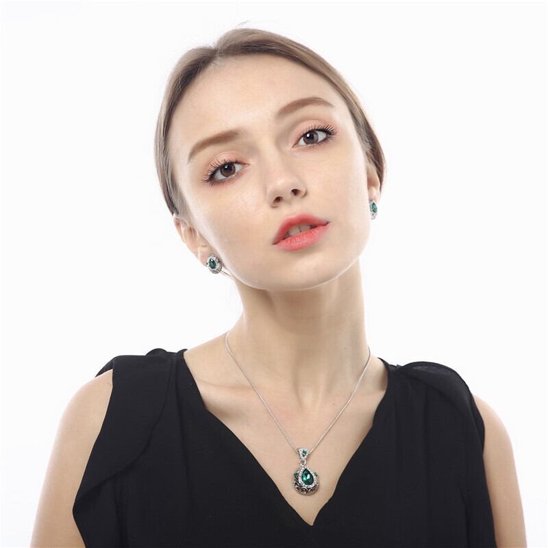 送料無料 2個パック2020ラグジュアリーグリーンカラーペアドバイウェディングジュエリーセット女性レディアニバーサリーギフトJ5896 アクセサリー AE00116644276180866