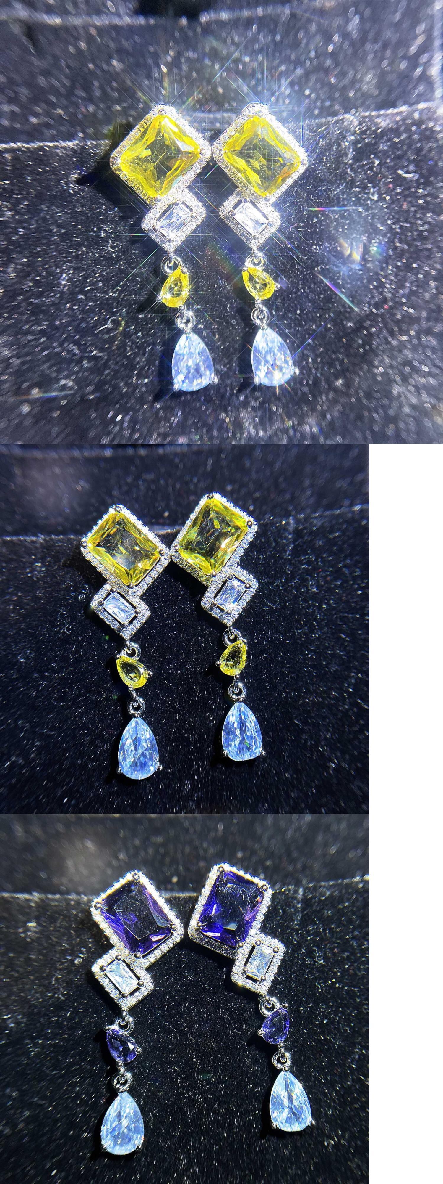 送料無料 2022ラグジュアリーイエローパープルカラーペアシルバーカラー韓国イヤリング女性アニバーサリーギフトジュエリーE6523 指輪 銀 アクセサリー AE00116614662165176