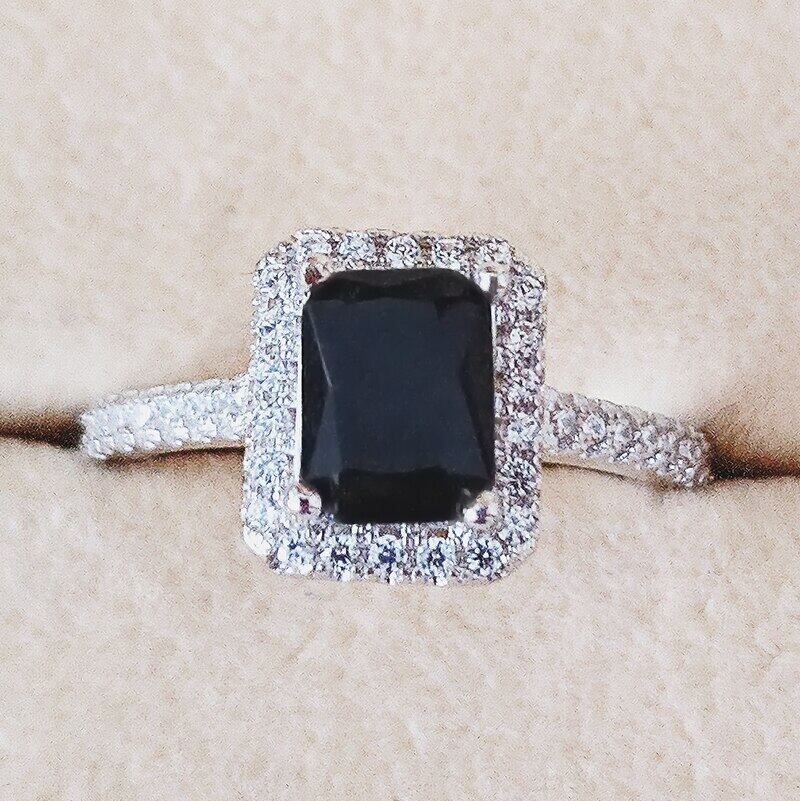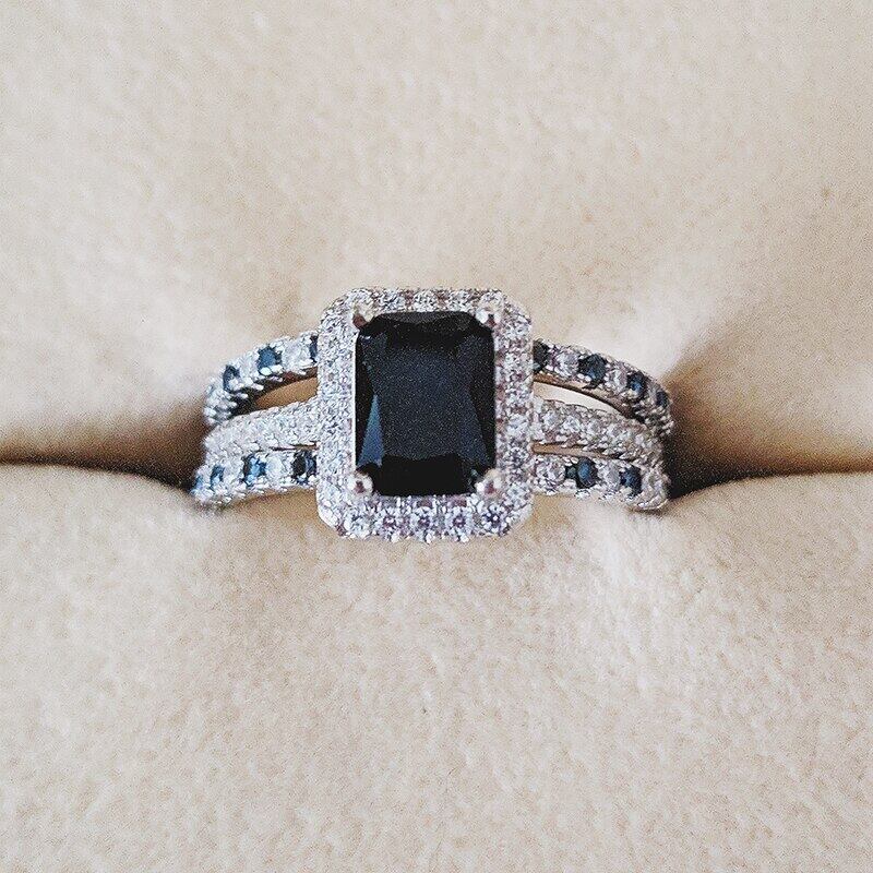 送料無料 シルバーカラーの花嫁のウェディングリングセット3in1バンドリング女性の婚約ブライダルジュエリーフィンガークリスマスR1997x-黒 ブラック 指輪 銀 アクセサリー AE00116653392635143