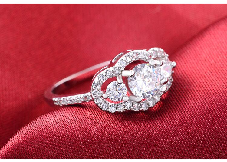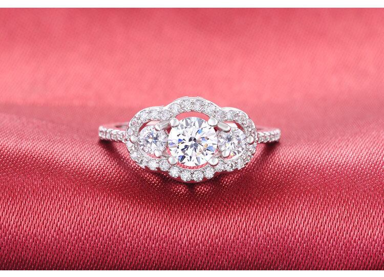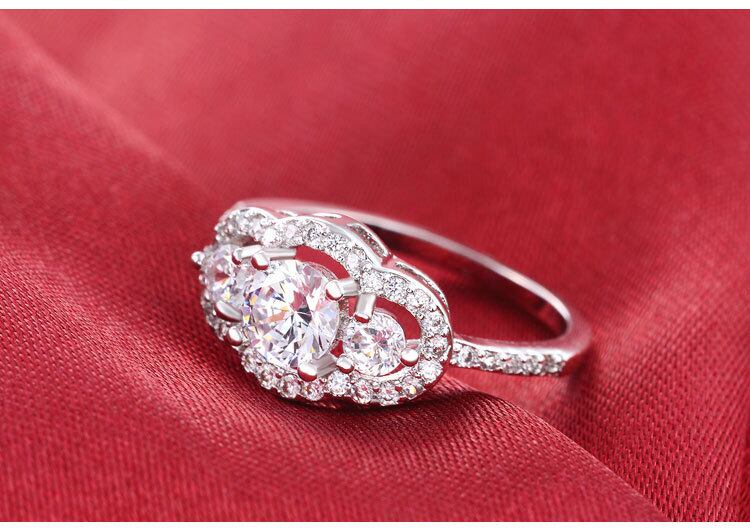 送料無料 本物のシルバーカラーデザイナーリング3石婚約指輪女性高級クリスマスアネルジュエリーR1406 銀 アクセサリー AE00116675586953685