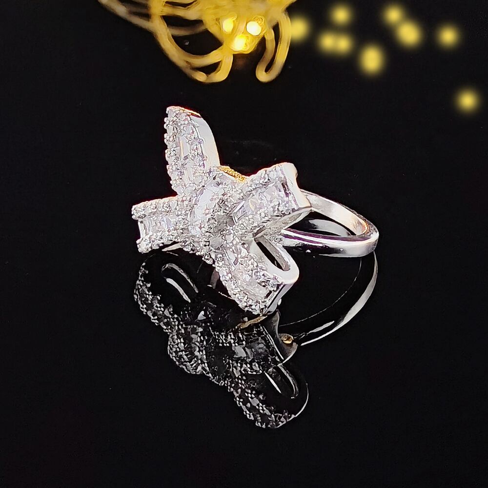 送料無料 2ピースパックシルバーカラー花嫁ボウノットカットジルコンジュエリーセット婚約指輪スタッドピアス女性ギフトJ6028 リボン イヤリング リング 銀 アクセサリー AE00116618374314975