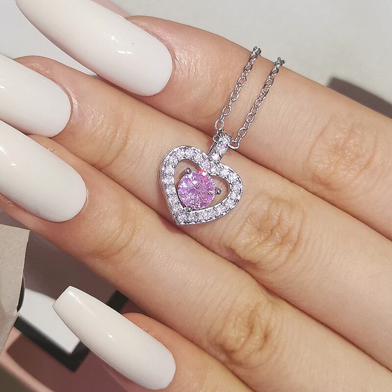 送料無料 2ピースパックシルバーカラー花嫁ジュエリーセットハート型スタッドピアスネックレスペンダントプロミスファッションクリスマスJ1472-ピンク レース イヤリング 銀 アクセサリー AE0011663620588057