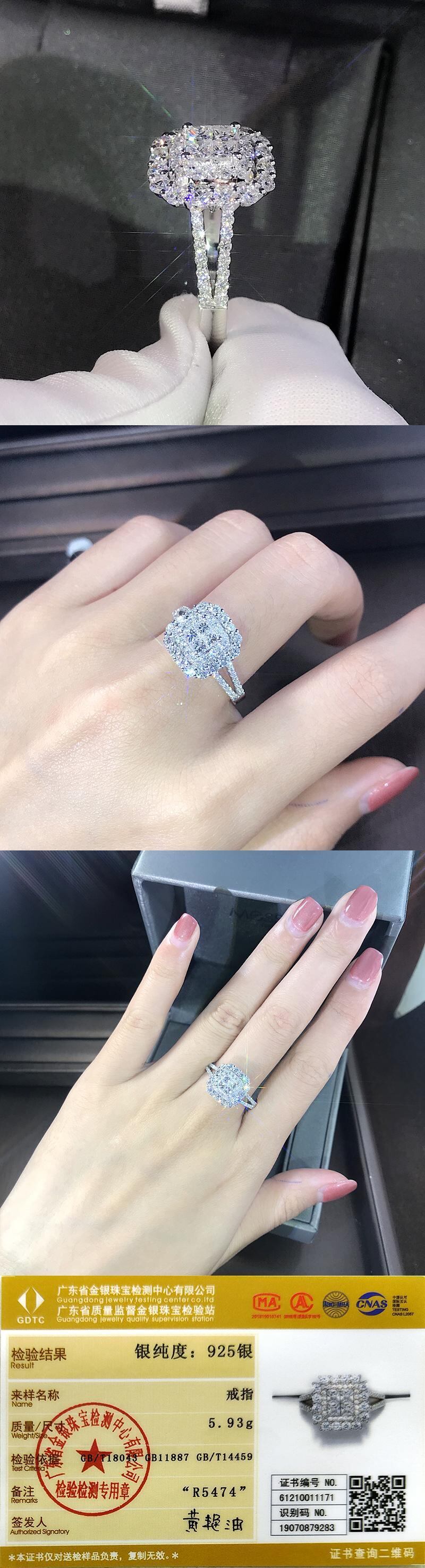 送料無料 2022ラグジュアリースクエアシルバーカラーエンゲージリングウィメンズレディアニバーサリーギフトジュエリーR5474 指輪 銀 スクウェア アクセサリー AE00116631526927491